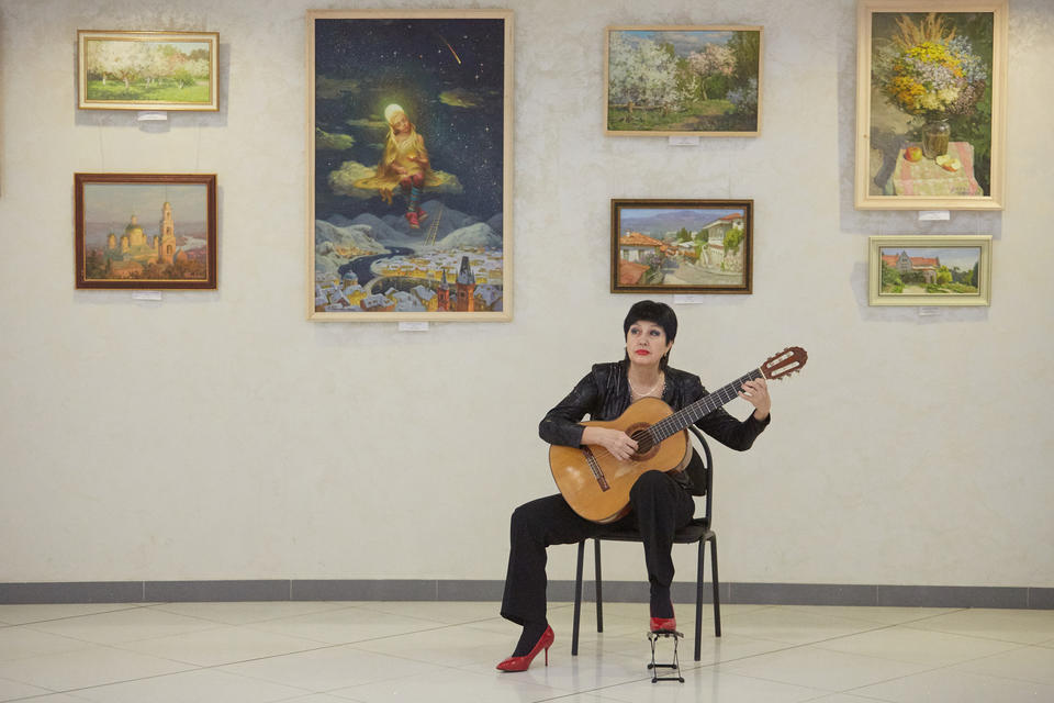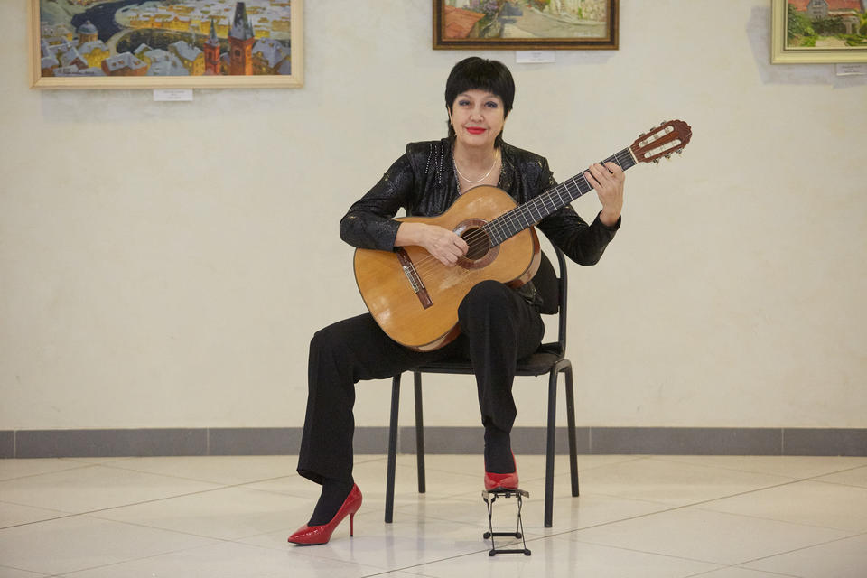 Особое настроение создавало музыкальное сопровождение мероприятия в исполнении художественного руководителя творческого коллектива «Экспромт» заслуженной артистки России Людмилы Лузгиной (гитара).