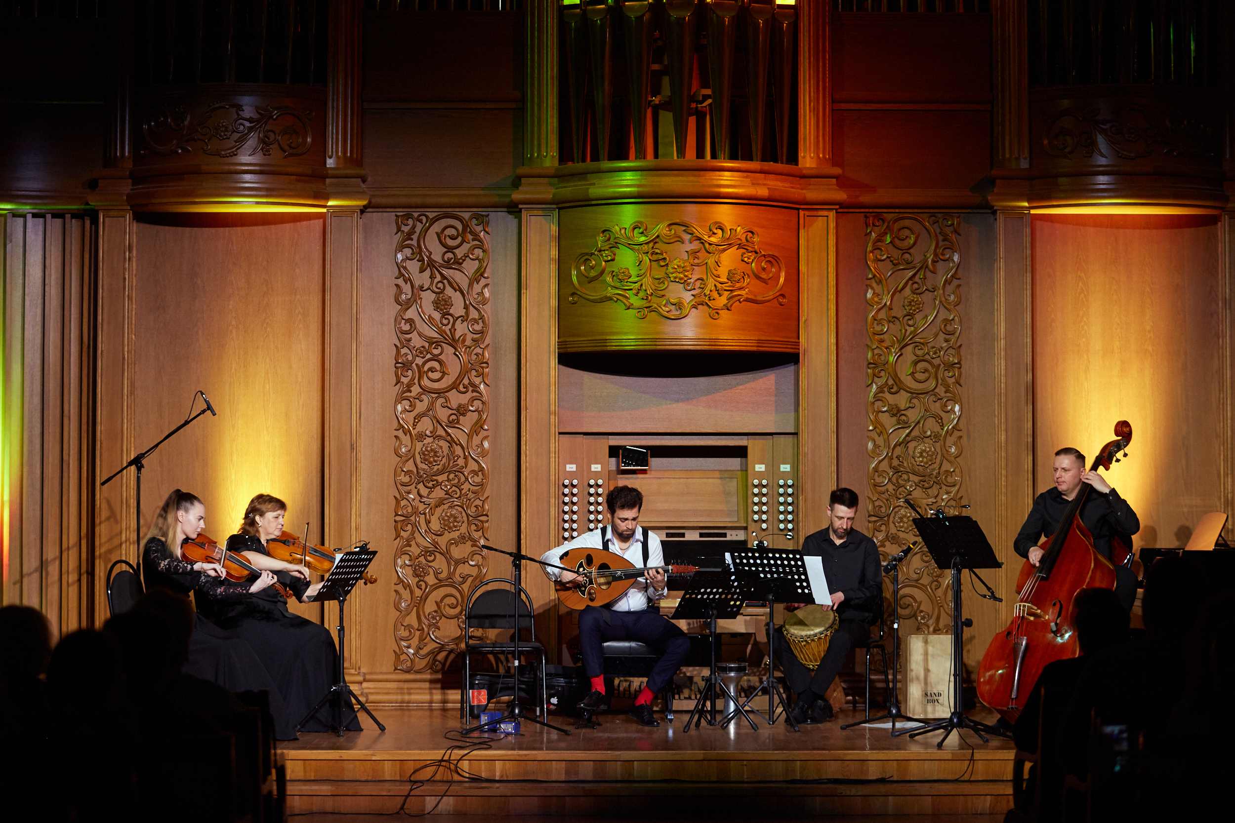 Вместе с музыкантами зрители отправились в путешествие по вселенной Востока, к легендам о мудрецах и смуглых красавицах, о караванах, уходящих в закат, горячем сердце пустынь и лике молчаливого Солнца в бескрайних голубых небесах.