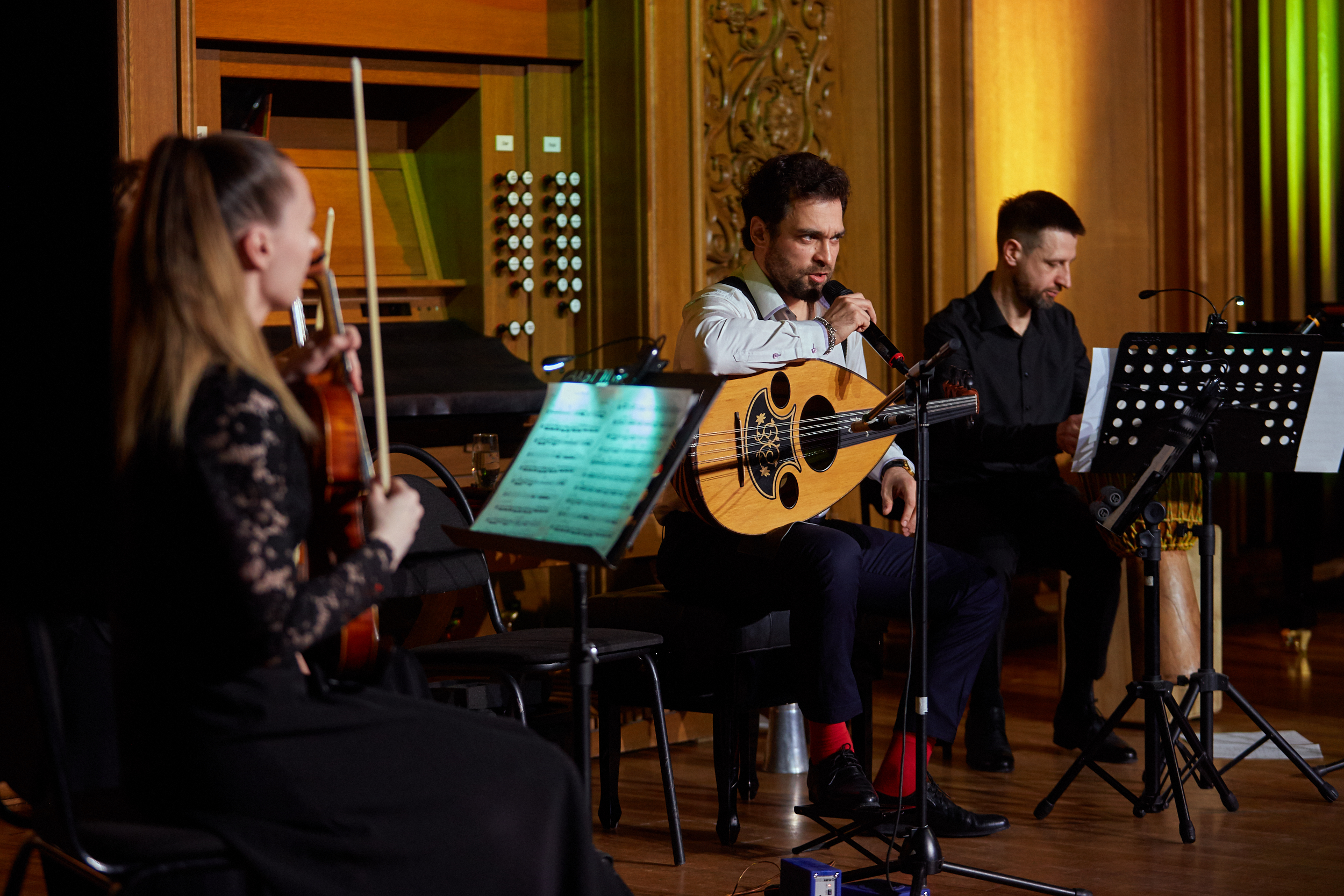 В среду, 20 марта, артист познакомил пензенскую публику со звучанием старинного восточного инструмента. Концерт «Сердцем на Восток» состоялся в Органном зале филармонии, где в компании двух альтов, контрабаса и перкуссии разливались звуки арабского уда.