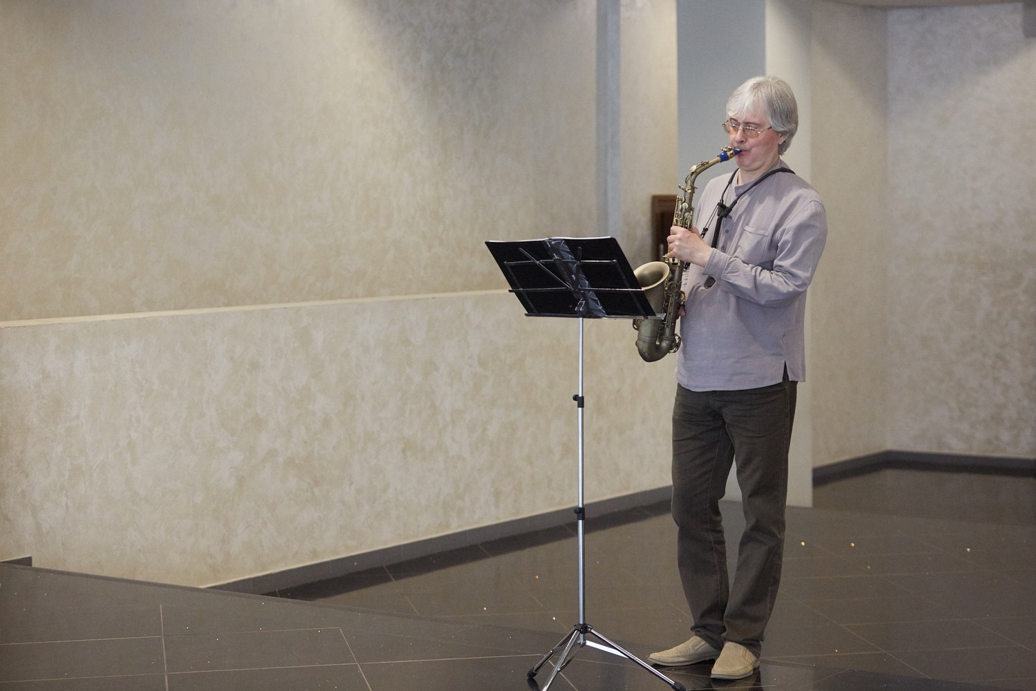 Гостей «Пензаконцерта» с музыкальной программой приветствовал музыкант эстрадно-джазового ансамбля «Экспресс-бэнд» Дмитрий Киселев (саксофон).