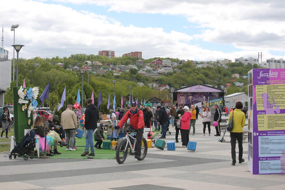 Весь день на Юбилейной площади работали интерактивные зоны, выставка-продажа продукции пензенских ремесленников на музыкальную тематику, кафе «Новые Берега» («Квартал Луи»), тематические фотозоны и инсталляции.