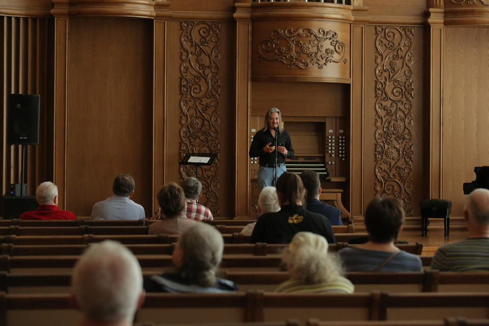 Пока на улице звучал джаз во всевозможных вариациях, в Органном зале филармонии шел мастер-класс «Мышление музыканта: тренинг и концертное исполнительство — от научных знаний к практике. Базовые механики импровизационного подхода. Работа над нюансами джазового музицирования». Познавательный тренинг провел профессиональный мультиинструменталист, педагог (доцент) Дмитрий Болдырь (г. Москва).