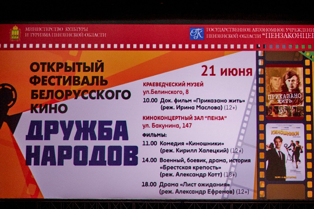 21 июня в Киноконцертном зале «Пенза» впервые состоялся Открытый фестиваль белорусского кино «Дружба народов».
