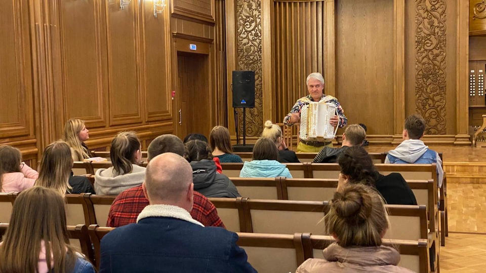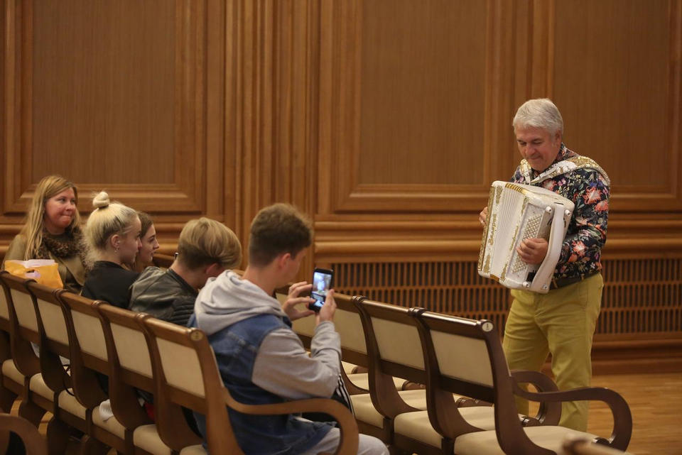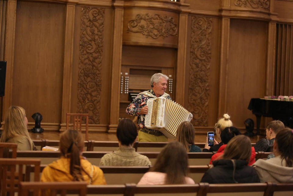 Известный российский баянист, аранжировщик, певец, композитор, теле- и радиоведущий, создатель и художественный руководитель группы «Белый день» Валерий Сёмин провёл мастер-класс в «Пензаконцерте».
