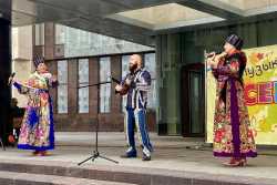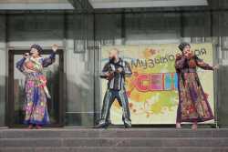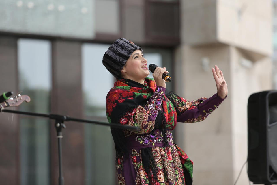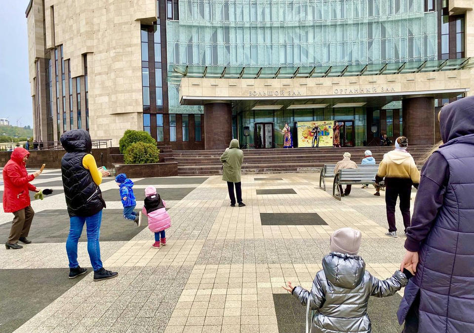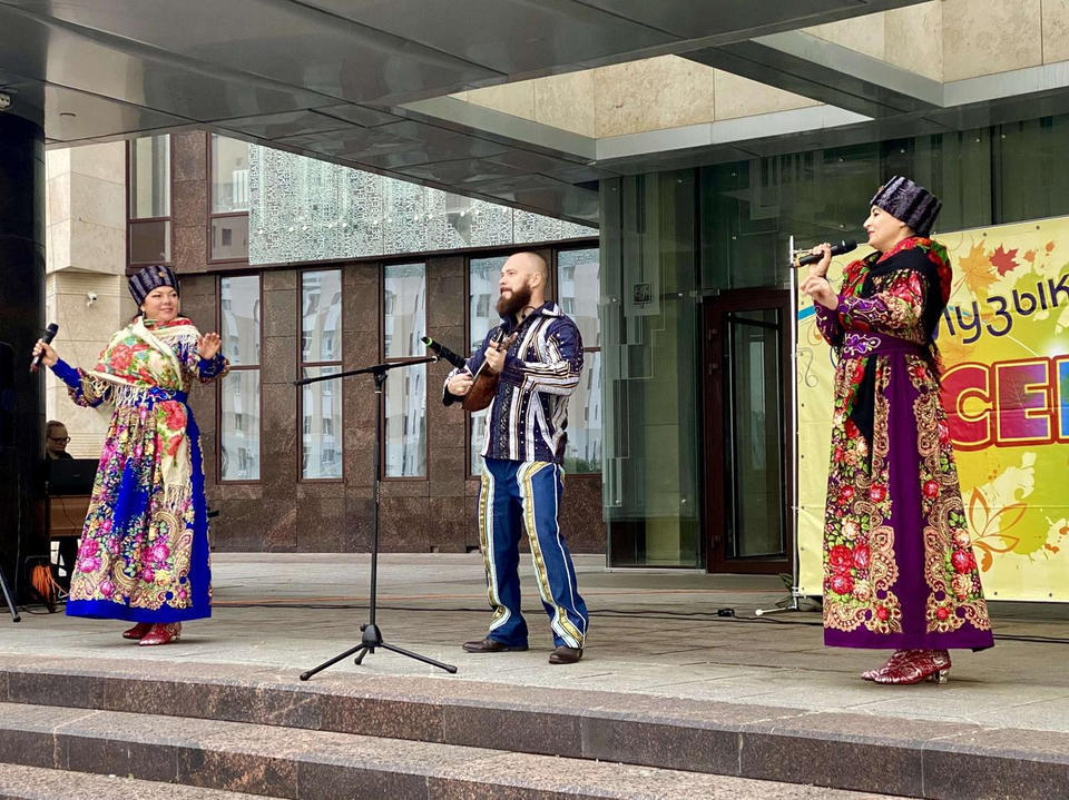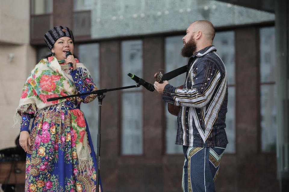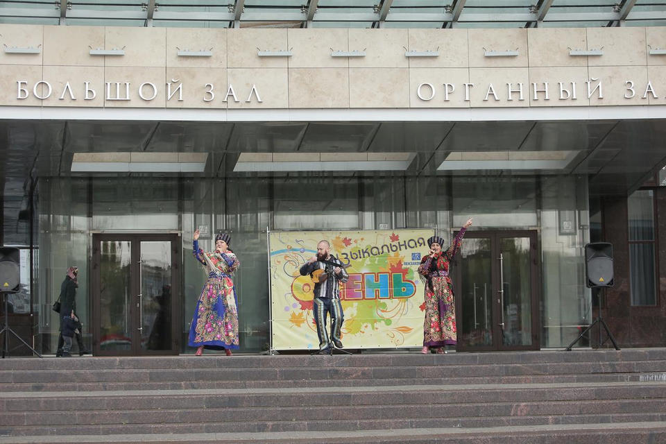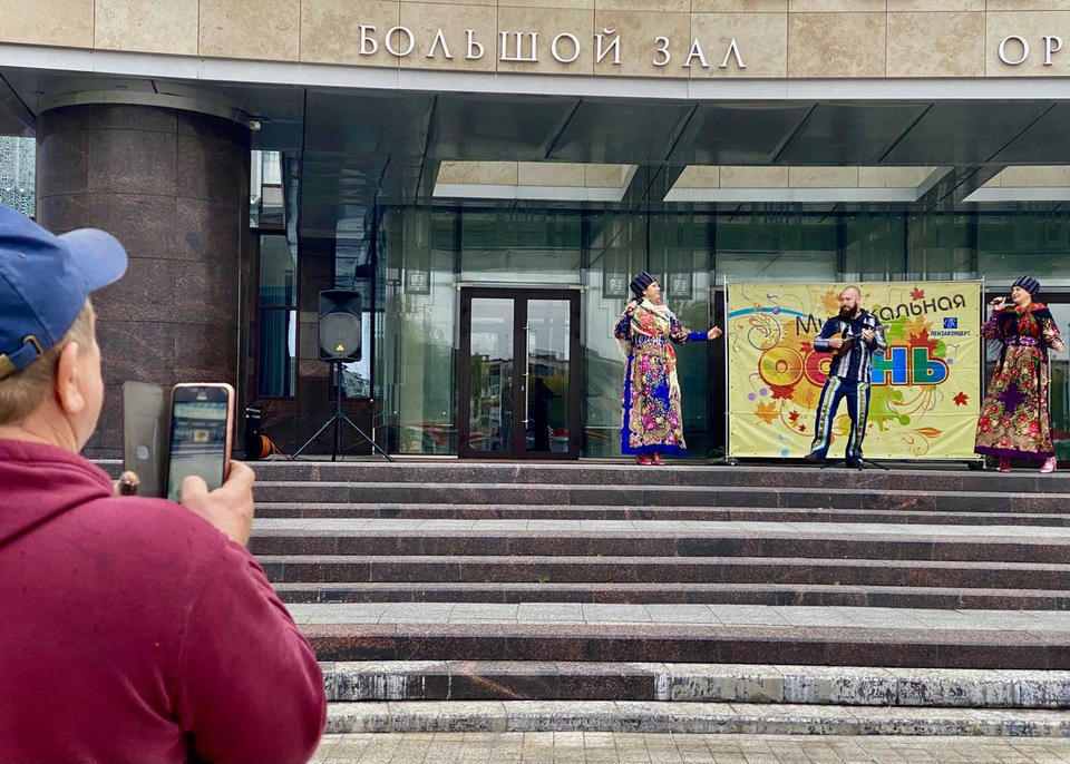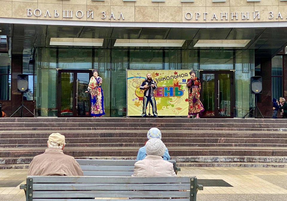 «От Волги до Енисея…», «Любимый мой», «Застольная», «От людей на деревне не спрятаться», «Мы к вам заехали на час», «Хорошо, что ты живёшь на соседней улице…» – эти и другие известные народные и эстрадные композиции звучали на площади возле центрального входа в здание филармонии.