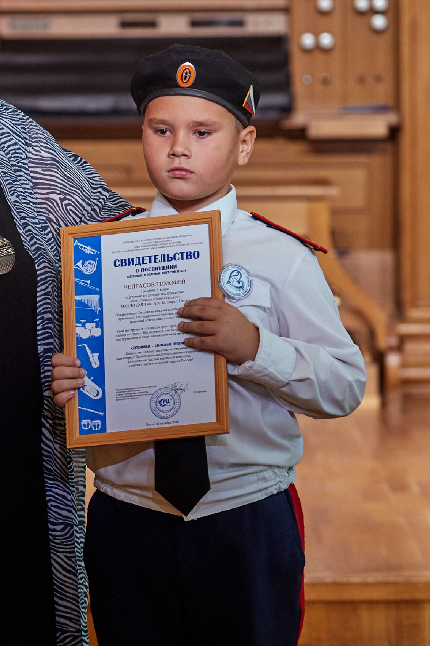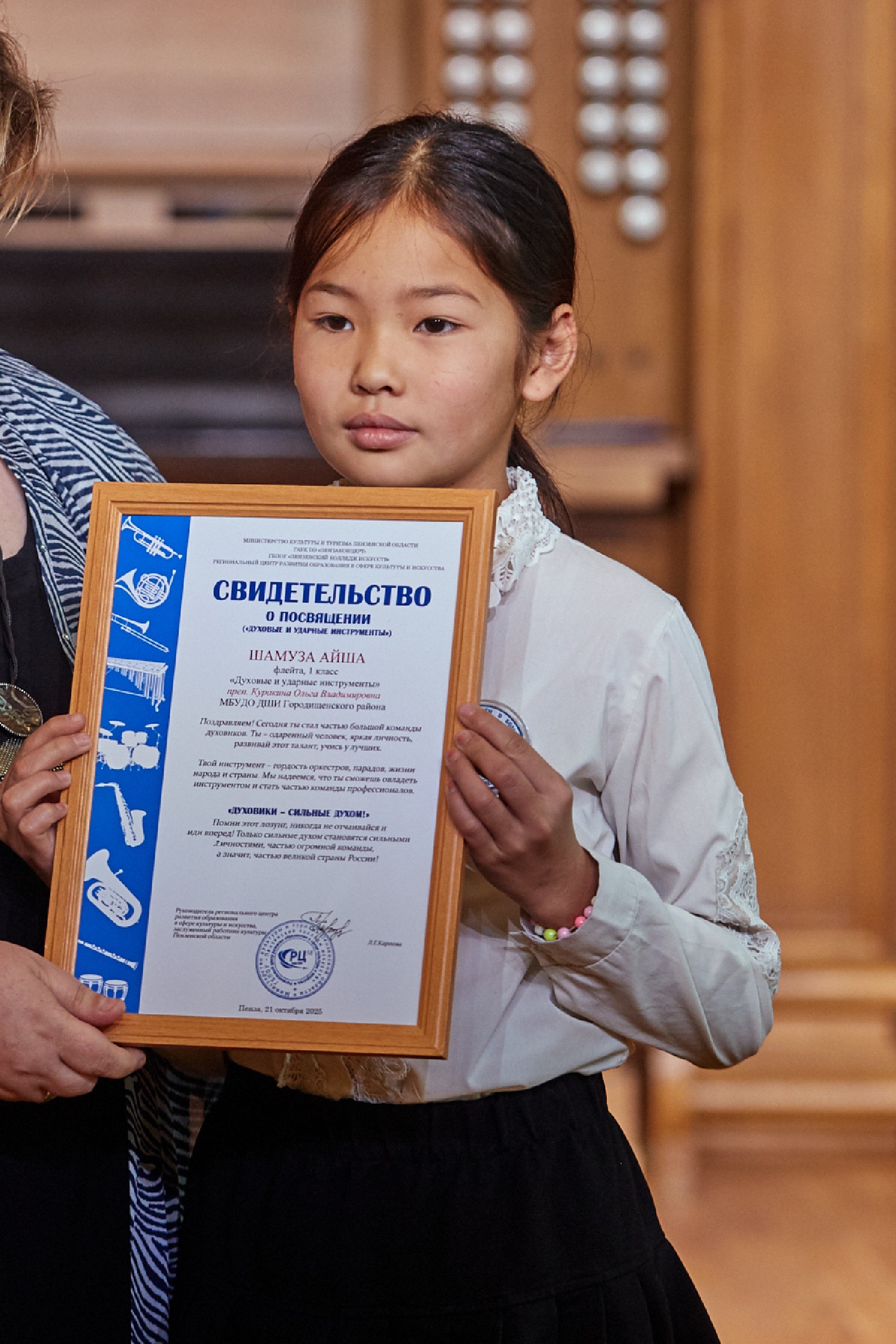 Сегодня в Органном зале филармонии в рамках Всероссийской акции Духового общества имени Валерия Халилова и Ассоциации духовых оркестров и исполнителей на духовых и ударных инструментах состоялось посвящение в духовики воспитанников детских музыкальных и школ искусств регионов.