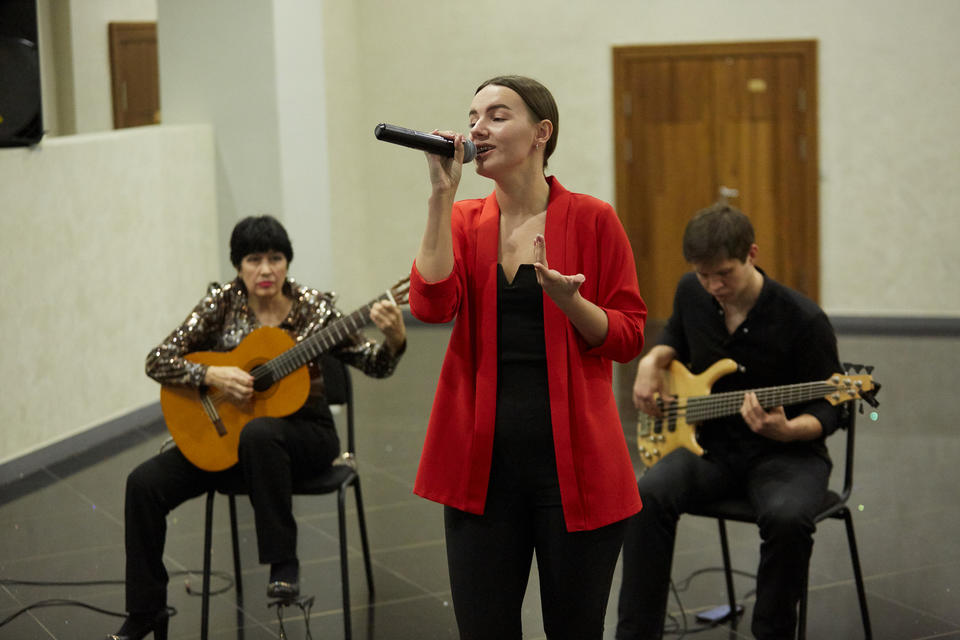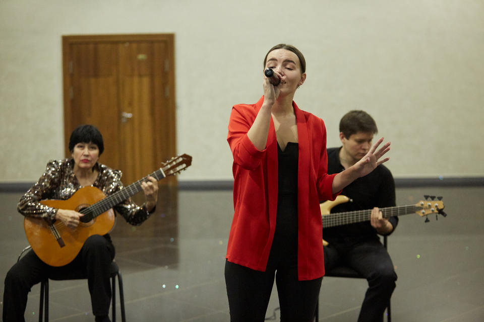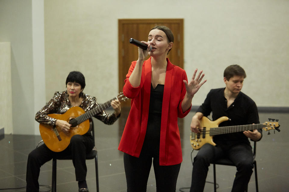 В фойе филармонии гостей приветствовали музыкальной программой артисты творческого коллектива «Экспромт».