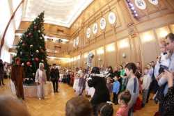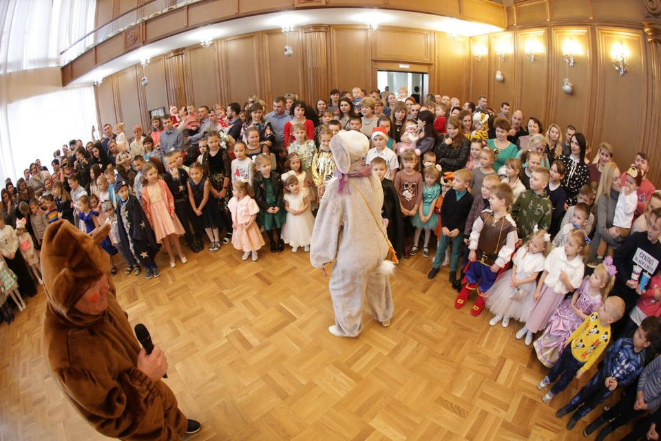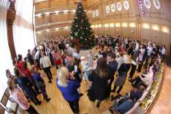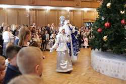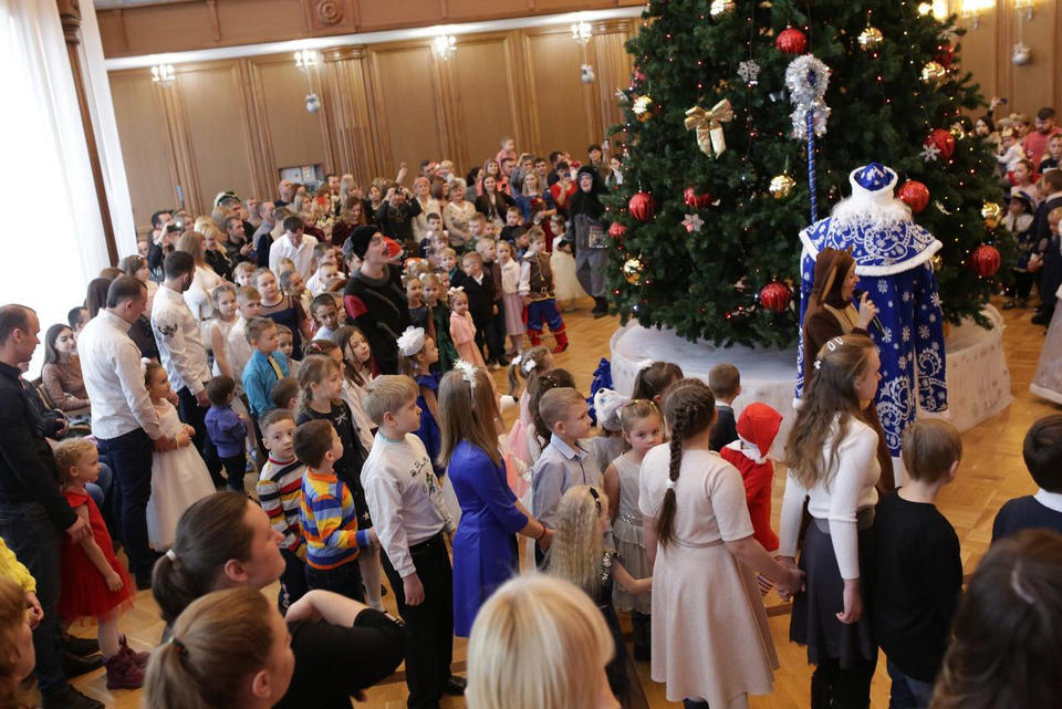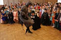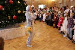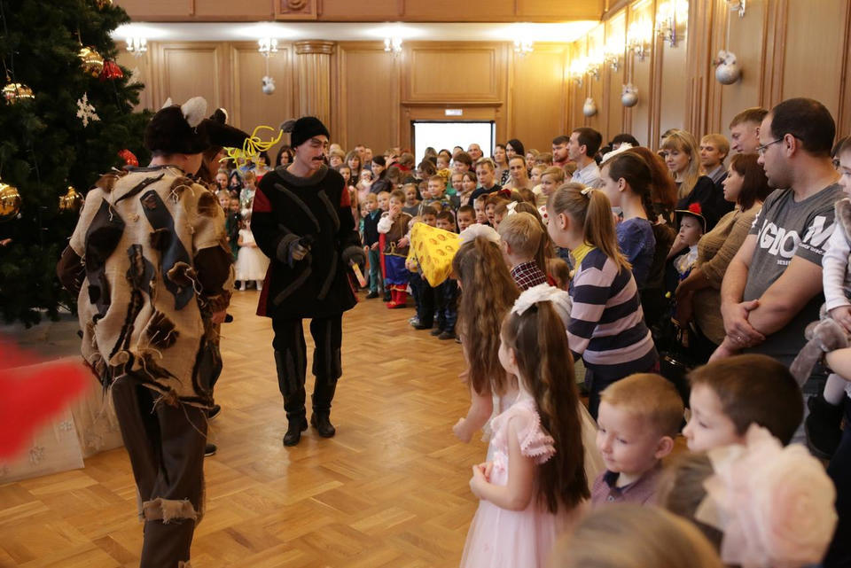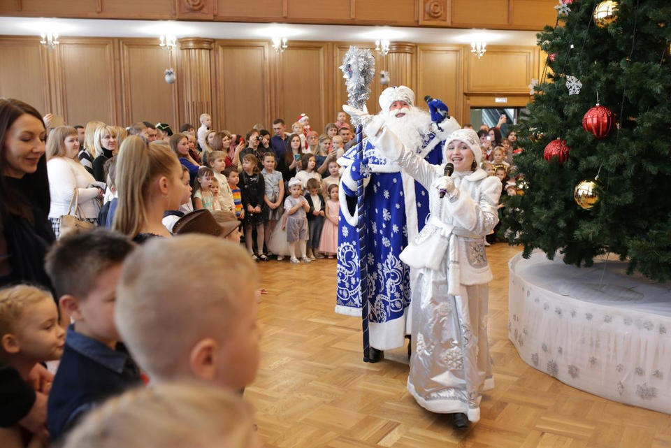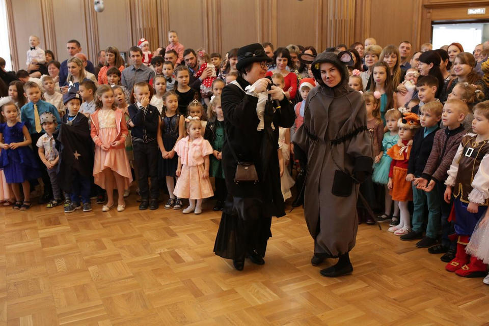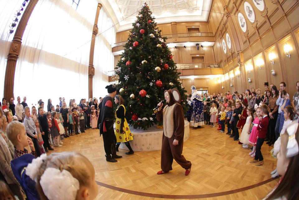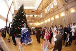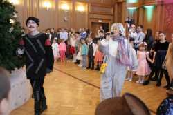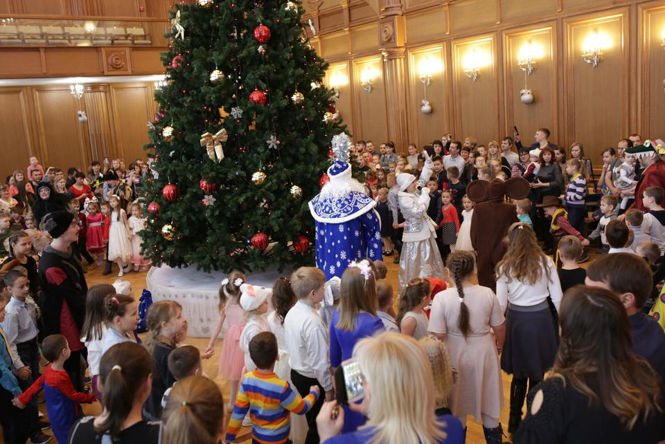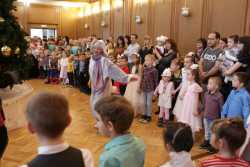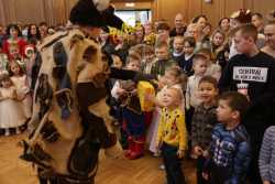 В Органном зале ансамбль русской этнической музыки «Миряне» подарил маленьким и большим гостям незабываемый хоровод вокруг красавицы-ёлки. Артисты в сопровождении Волшебного Органа (Софья Семьянова) показали увлекательное представление с песнями, танцами, конкурсами и вместе с ребятами встретили главных героев праздника – Деда Мороза и Снегурочку.
