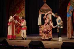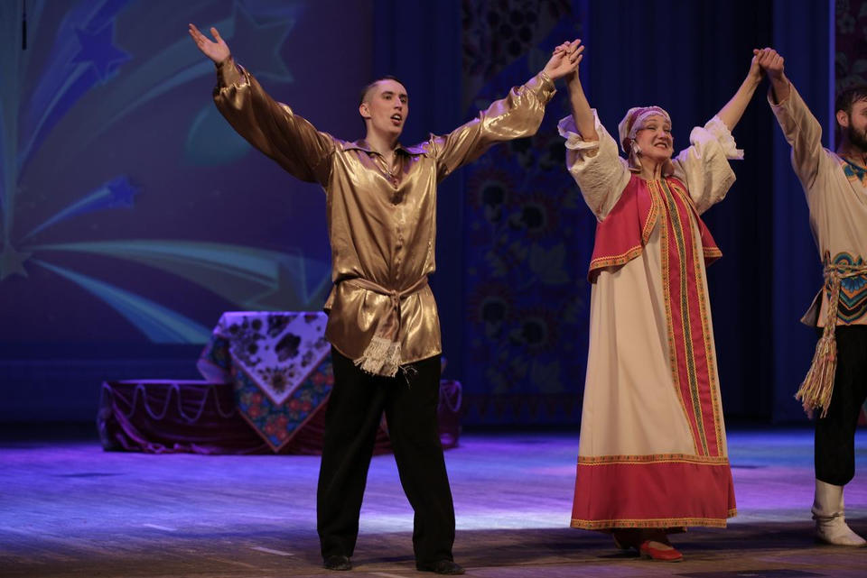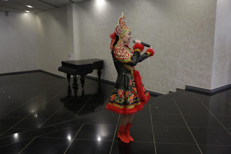 Перед представлением гостей с музыкальной программой «Весёлые нотки» встречала солистка ансамбля «Злато-Серебро» Карина Мещерякова.