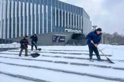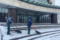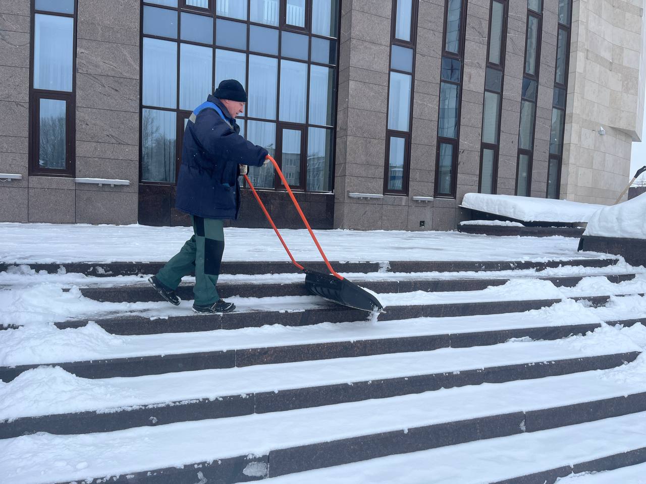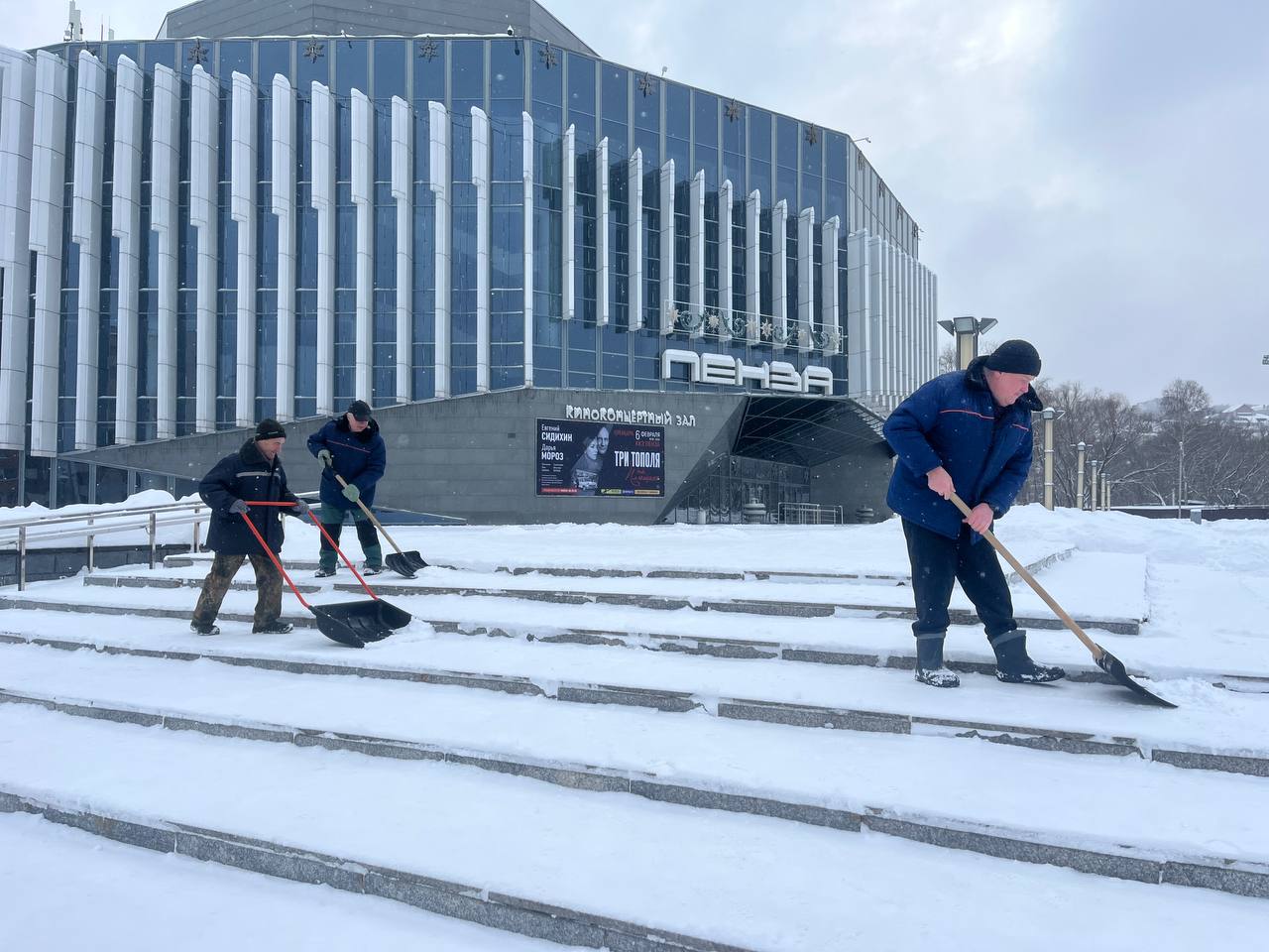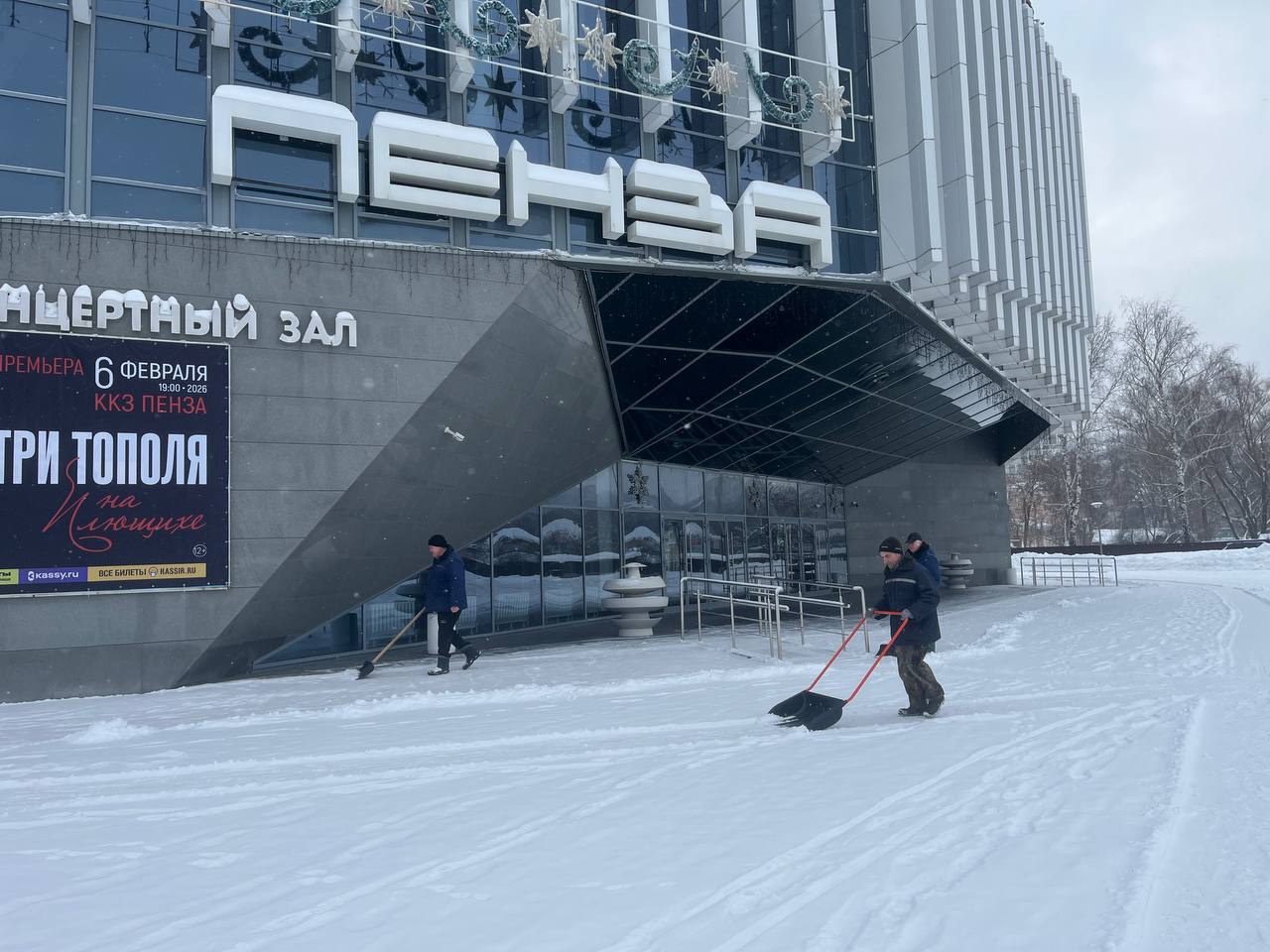На территории «Пензаконцерта» ежедневно ведутся работы по уборке снега. Для расчистки территории используется как подручный инвентарь, так и спецтехника.
