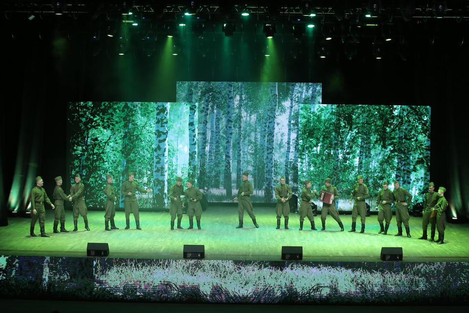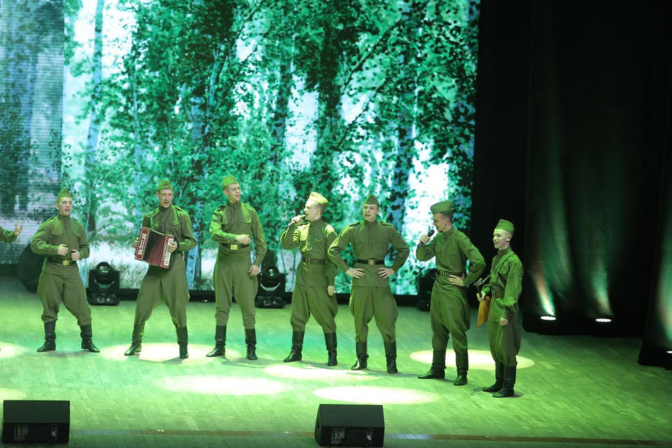 В исполнении артистов прозвучали такие композиции, как «Красная Армия», «Мир без войны», «Герои», «За тебя, Родина-мать!», «Когда мы были на войне», «Широка страна моя родная», «Патриоты России» и другие.
