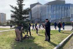 При помощи подручного инвентаря сотрудники занимались благоустройством прилегающей к филармонии и концертному залу территории. Была произведена очистка всех газонов и тротуаров от мусора, листвы и песка, вскопана земля вокруг деревьев, в том числе благоустроена зона детской площадки.