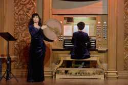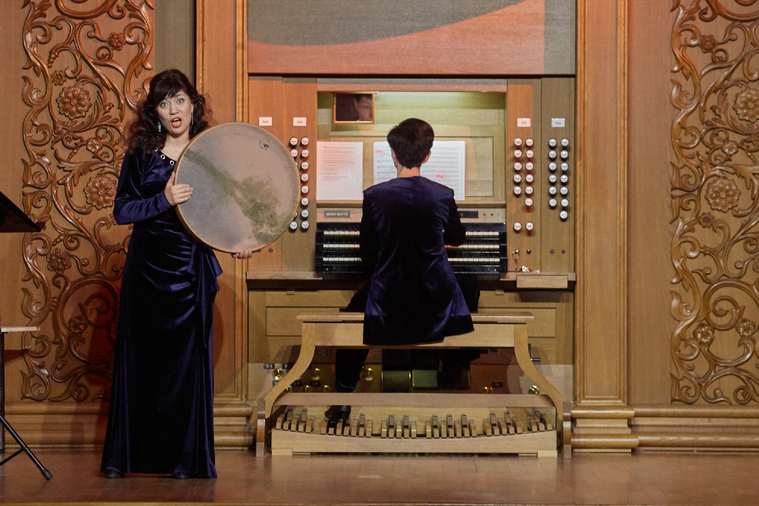 Впервые на сцене Органного зала филармонии выступили лауреат международного конкурса Наталия Дубровская (сопрано, рамочные барабаны, тамбурин, кастаньеты, бубенцы) и лауреат всероссийских и международных конкурсов, органистка, музыковед Мария Моисеева.