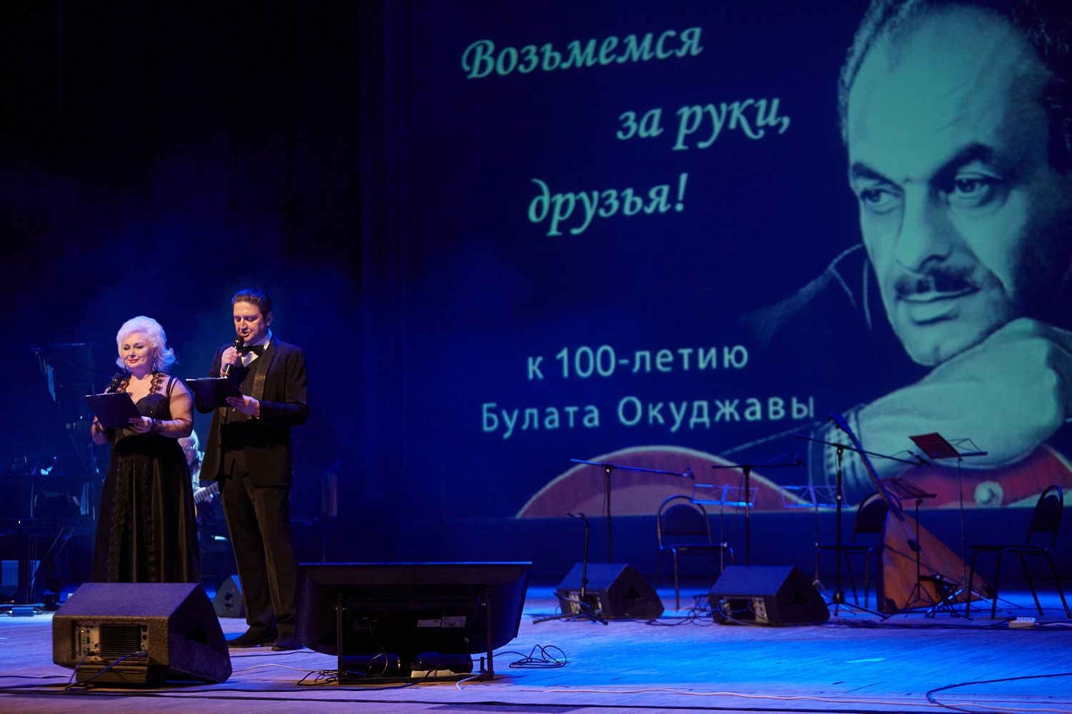 Концерт Аллы Тарховой «Возьмемся за руки, друзья!», посвященный 100-летию со дня рождения одного из самых значимых поэтов-бардов ХХ века Булату Окуджаве, состоялся 21 мая в филармонии.
