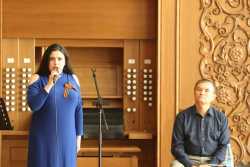 В исполнении солистки Губернаторской симфонической капеллы Гульсины Рафековой и известного пензенского поэта, лауреата Всероссийской премии М.Ю. Лермонтова Валерия Сухова прозвучали песни и стихи, посвящённые подвигу советского народа в годы Великой Отечественной войне.