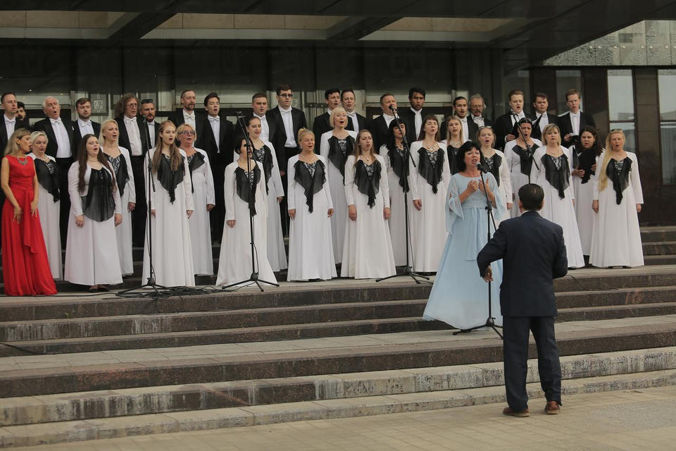 В День памяти и скорби – 22 июня – на открытой площади перед центральным входом в здание филармонии состоялась концертная программа «Поклонимся великим тем годам...» в исполнении академического хора и солистов Губернаторской симфонической капеллы п/у Заслуженного деятеля искусств России Владимира Каширского.