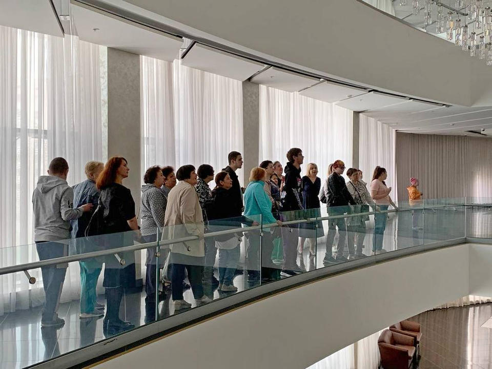 Для гостей была проведена экскурсия, в ходе которой они побывали в концертных залах, узнали об архитектурных особенностях здания и его внутренней отделки.