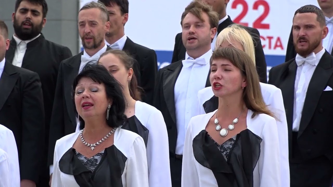 Академический хор Губернаторской симфонической капеллы п/у Заслуженного деятеля искусств России Владимира Каширского исполняет Гимн России в рамках празднования Дня государственного флага Российской Федерации, который отмечается 22 августа.