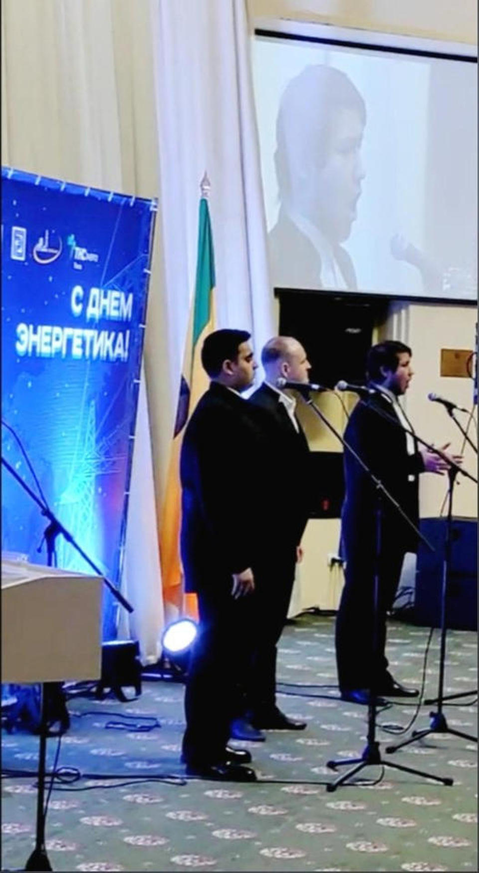 Музыкальный подарок пензенским энергетикам преподнесли артисты «Пензаконцерта»: солисты Губернаторской симфонической капеллы Сергей Митрофанов, Руслан Проскуряков и Сергей Князев, исполнительница народной песни Марта Серебрякова и струнный квартет «Премьера».
