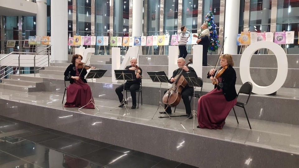 В фойе Киноконцертного зала «Пенза» работала презентация материалов, предоставленных Музеем кино, а гостей фестиваля с музыкальной программой встречал струнный квартет «Премьера».