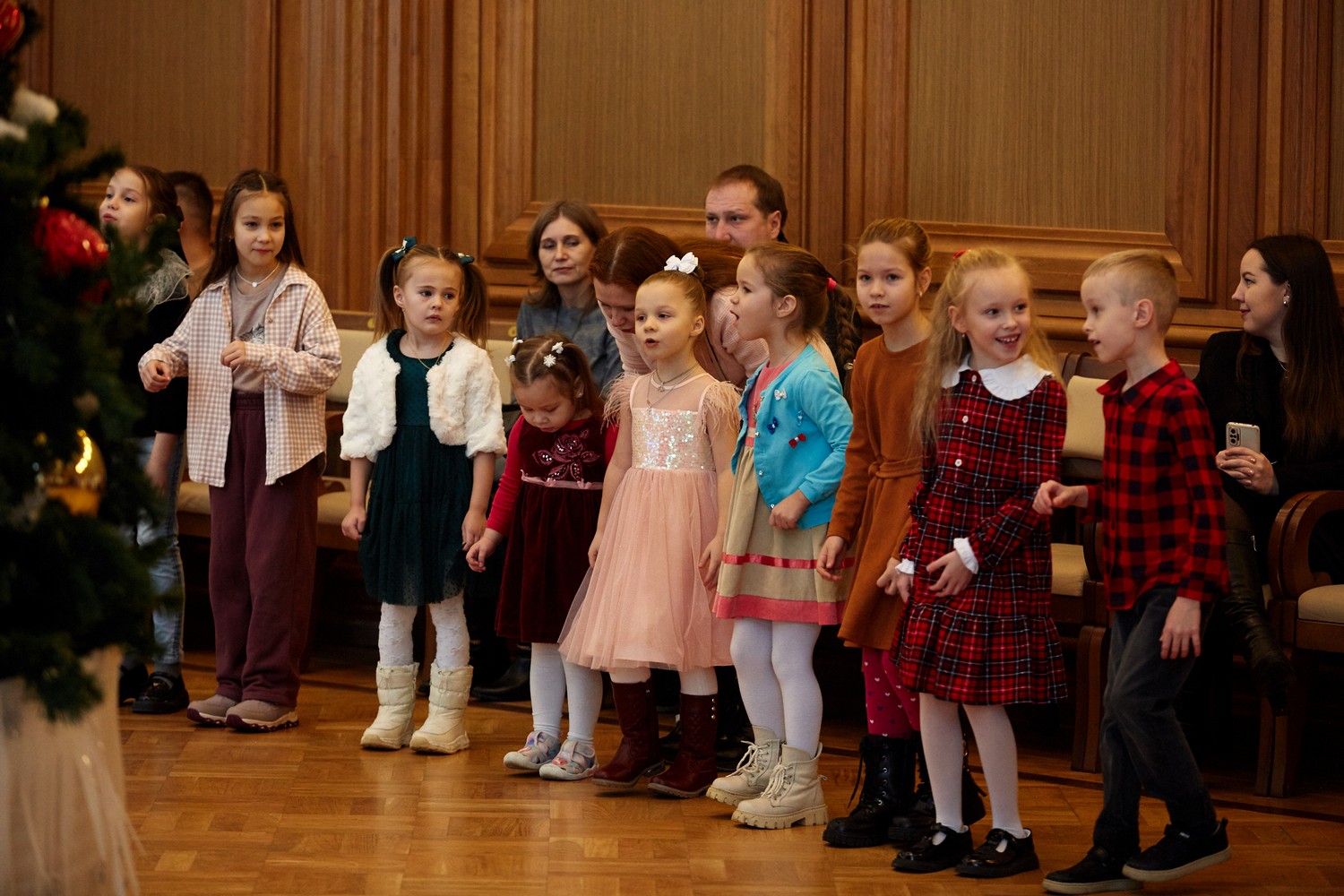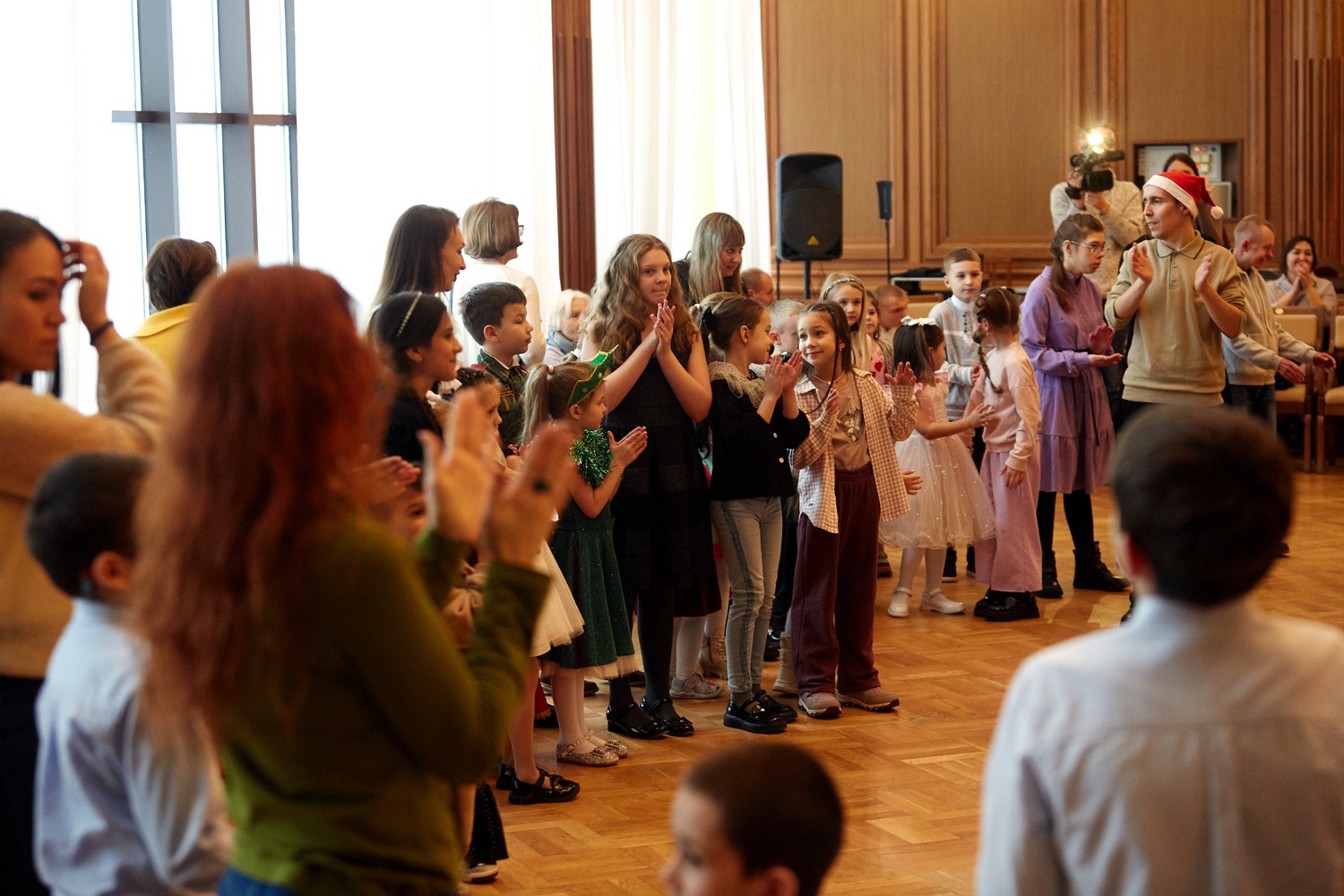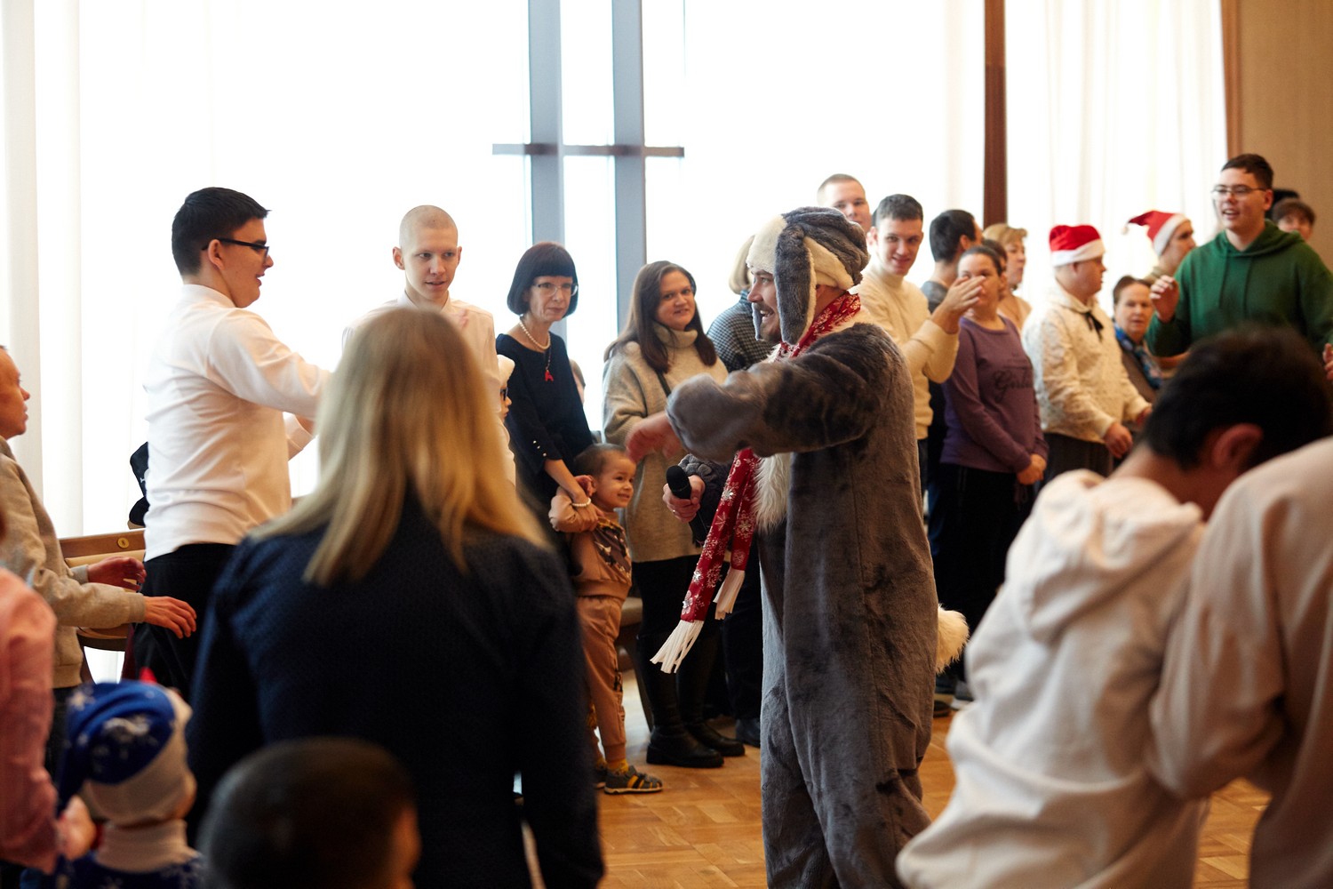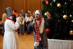 Праздник начался в Органном зале. Юные гости отгадывали новогодние загадки, пели песни и водили хоровод вокруг нарядной ёлки вместе с забавными сказочными героями, Дедом Морозом и Снегурочкой. Затем в Большом зале группа «Калейдоскоп» представила музыкальное представление «Золушка».
