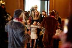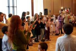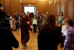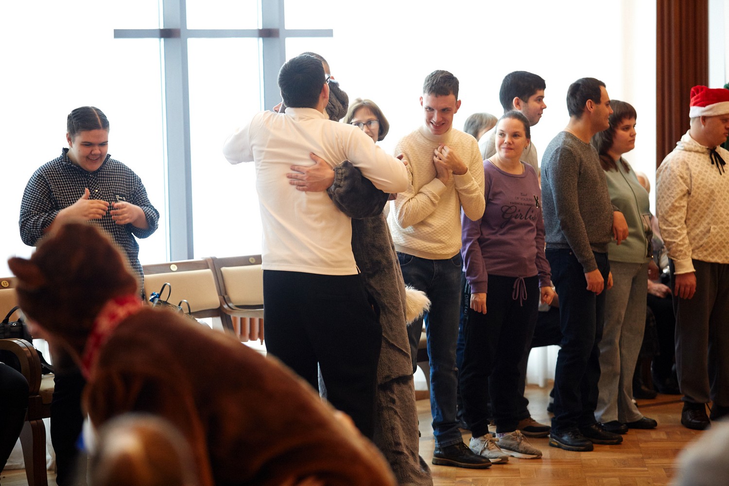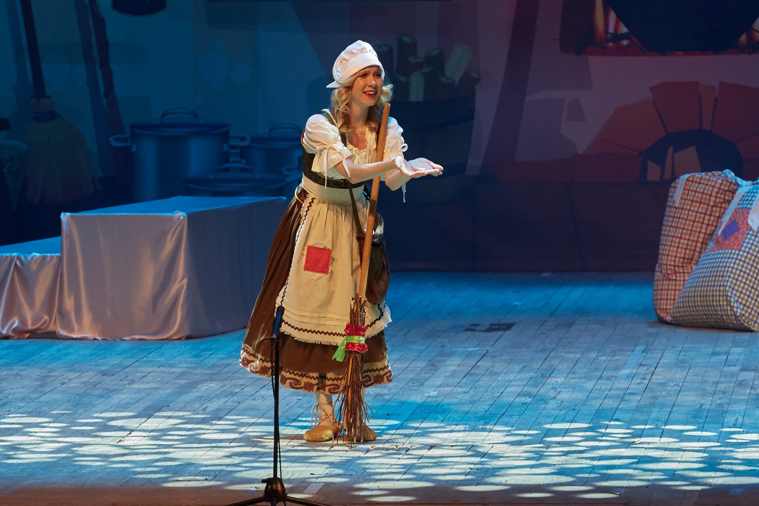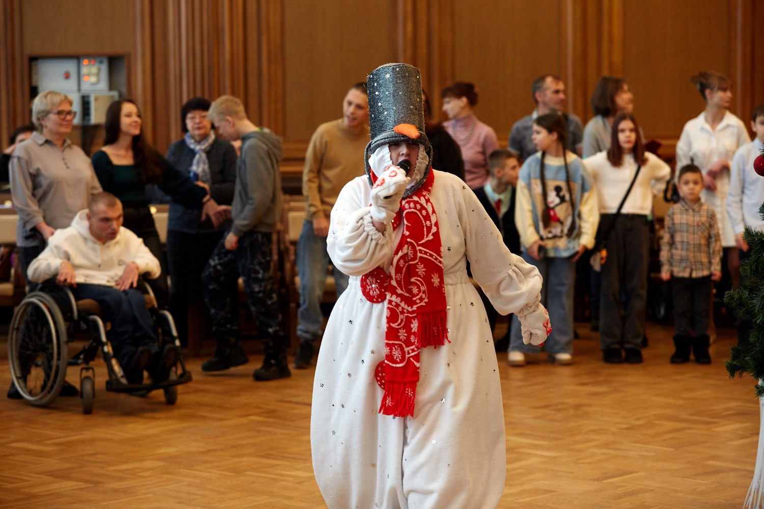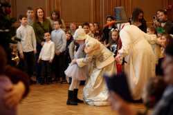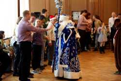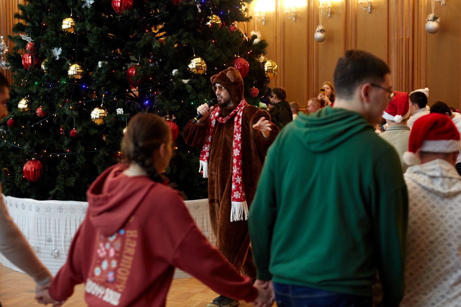 Праздник начался в Органном зале. Юные гости отгадывали новогодние загадки, пели песни и водили хоровод вокруг нарядной ёлки вместе с забавными сказочными героями, Дедом Морозом и Снегурочкой. Затем в Большом зале группа «Калейдоскоп» представила музыкальное представление «Золушка».