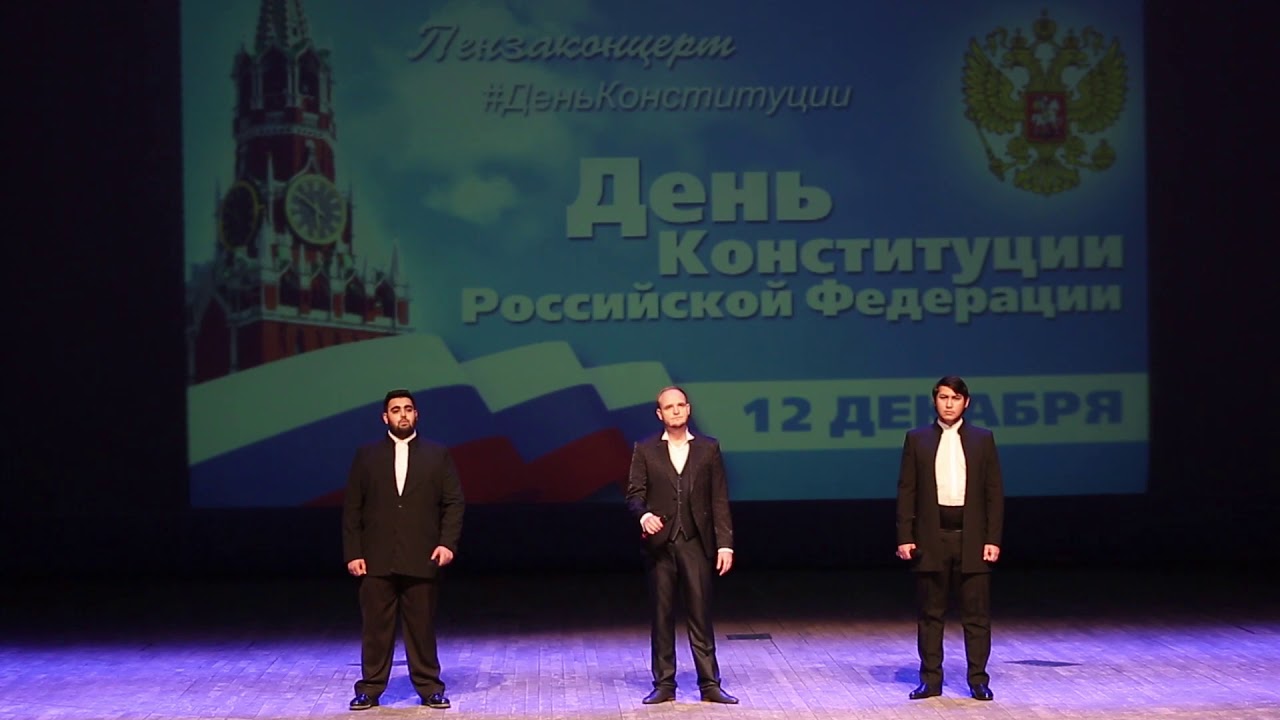 В рамках Всероссийской акции ко Дню Конституции РФ солисты Губернаторской симфонической капеллы – Сергей Митрофанов, Сергей Князев и Руслан Проскуряков – исполняют песню «Я люблю тебя, Россия!».