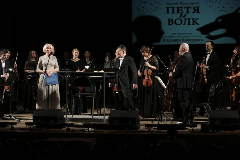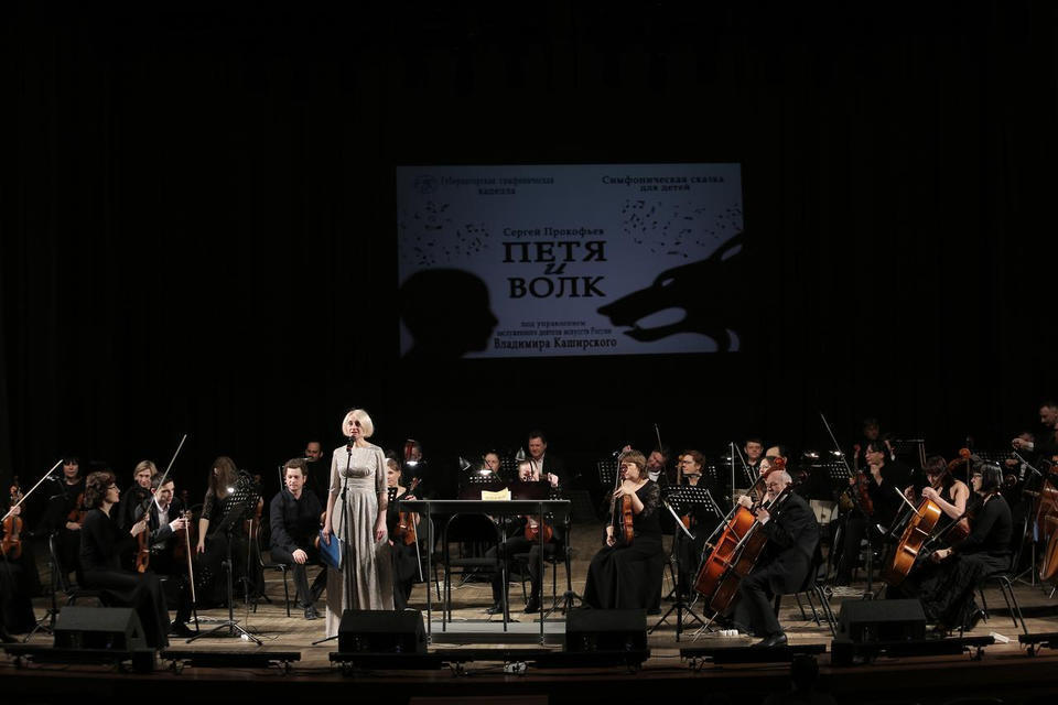 Симфонический оркестр Губернаторской симфонической капеллы п/у Заслуженного деятеля искусств России Владимира Каширского представил юным зрителям увлекательную сказку с оркестром «Петя и волк», написанную Сергеем Прокофьевым на собственный текст в 1936 году.