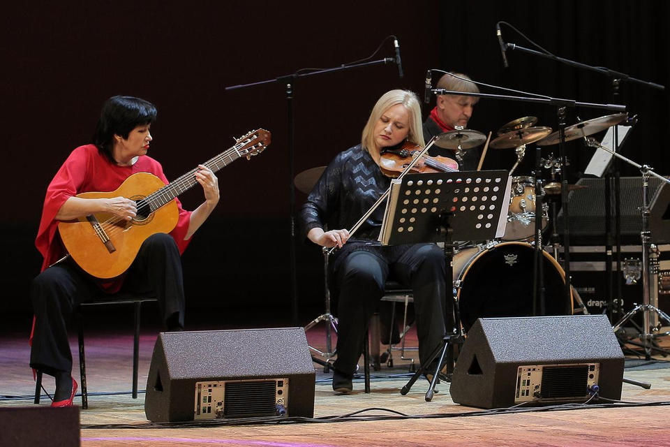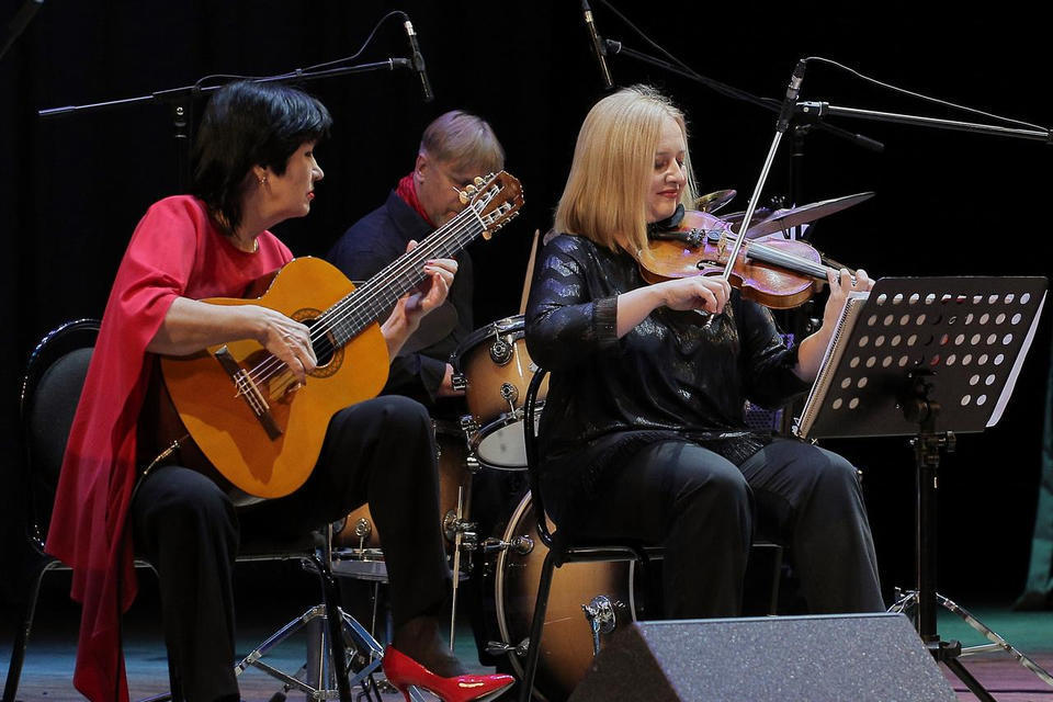 Заслуженная артистка России Людмила Лузгина (гитара) и артисты «Экспромта» предложили зрителям провести этот вечер «В стиле Латино» (6+) и окунуться в атмосферу зажигательной танцевальной музыки.