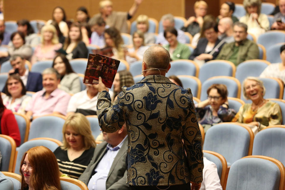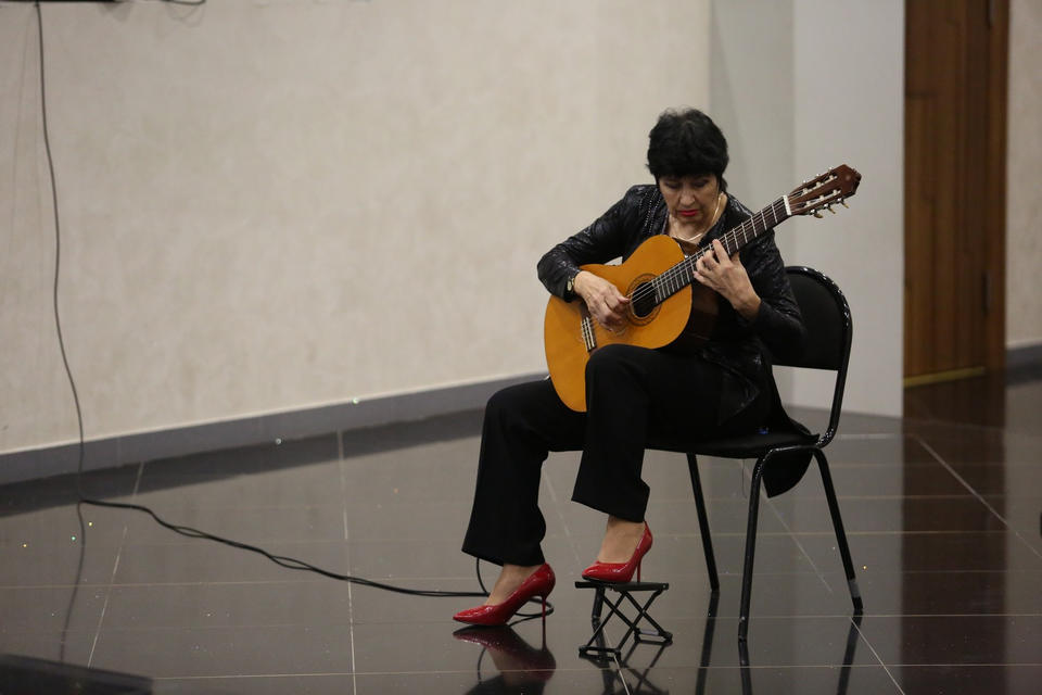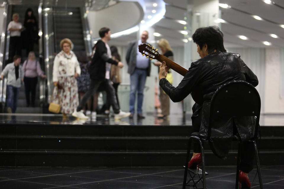 В фойе второго этажа филармонии гостей вечера встречала руководитель творческого коллектива «Экспромт» Людмила Лузгина с музыкальной программой в рамках акции «Добро пожаловать!».