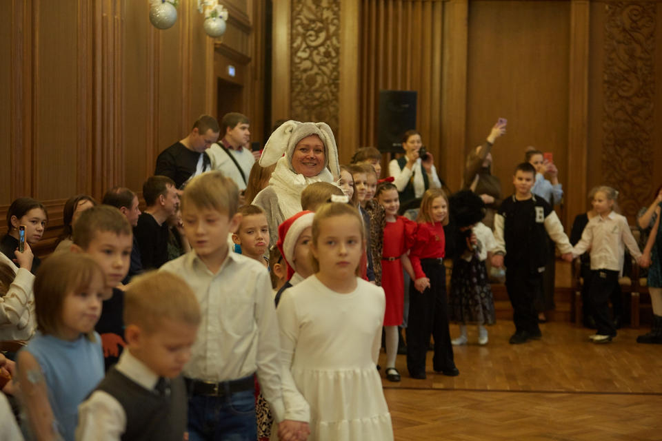 В Органном зале филармонии, возле красавицы-ёлки, ребята водили новогодний хоровод с Дедом Морозом и Снегурочкой в компании веселых зверей и под звуки волшебного органа в исполнении артистов ансамбля русской этнической музыки «Миряне» и органистки «Пензаконцерта» Софьи Семьяновой.