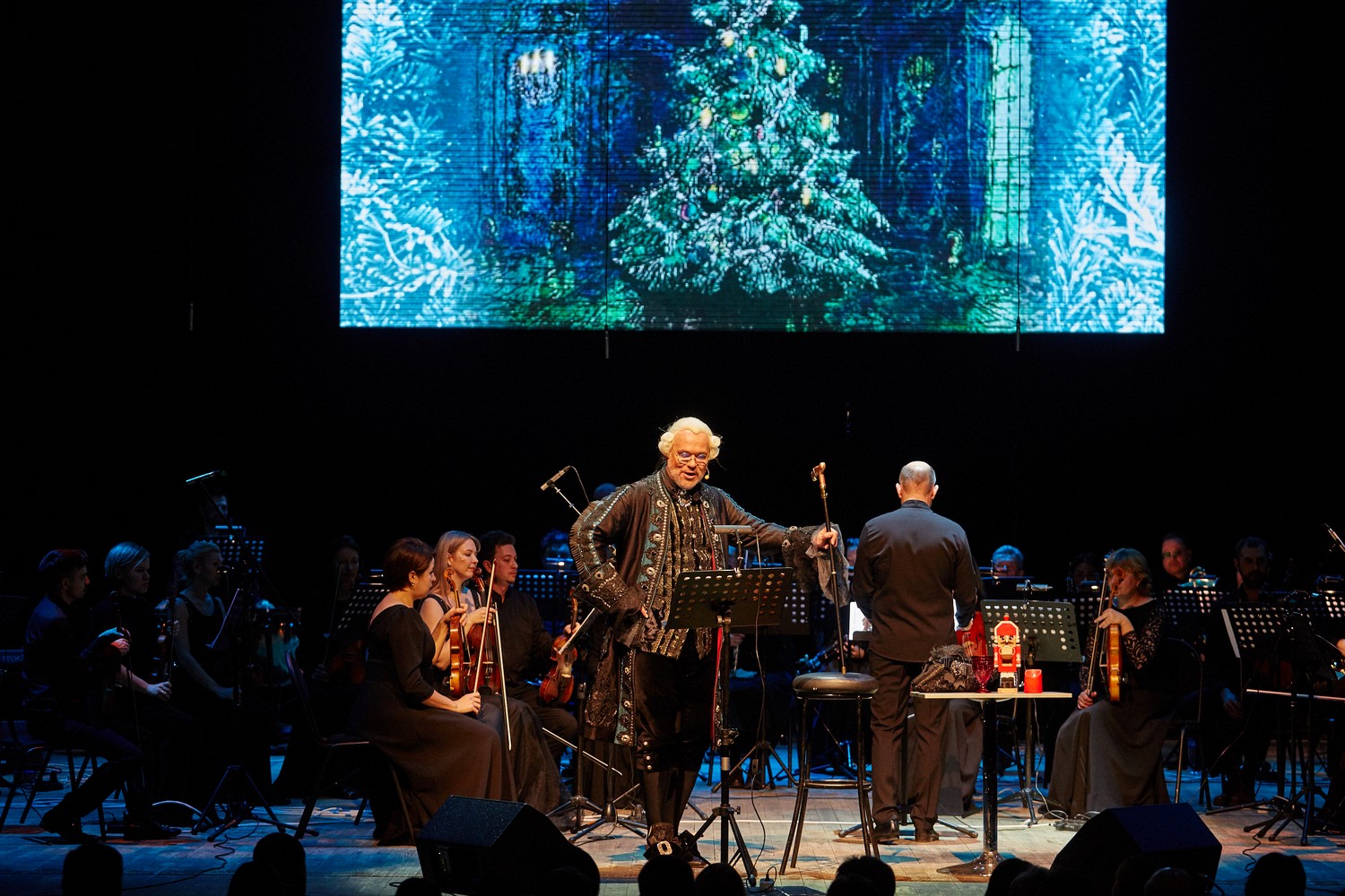 22 декабря в киноконцертном зале «Пенза» заслуженный артист России Максим Аверин исполнил авторскую сказку «Щелкунчик» в сопровождении симфонического оркестра.