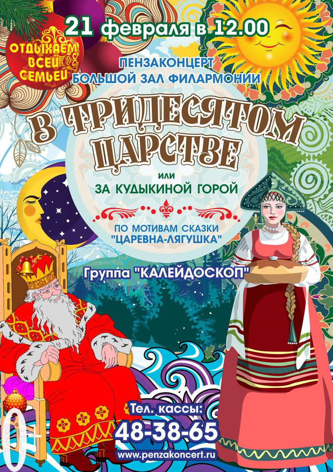 «Пензаконцерт» приглашает на музыкальный спектакль «В тридесятом царстве, или За Кудыкиной горой» в исполнении группы «Калейдоскоп» (0+), который состоится уже завтра - 21 февраля - в Большом зале филармонии в рамках цикла «Отдыхаем всей семьёй!».