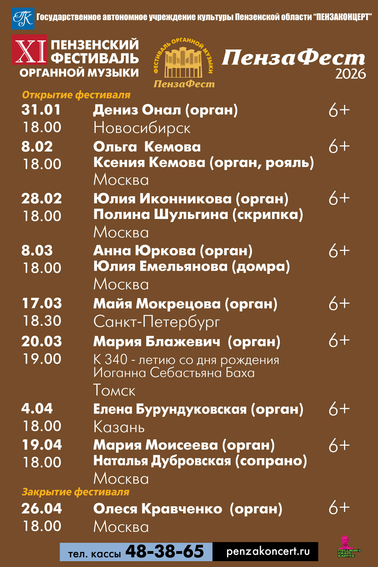 Билеты на органные концерты можно приобрести по программе «Пушкинская карта», которая реализуется благодаря национальному проекту «Семья».