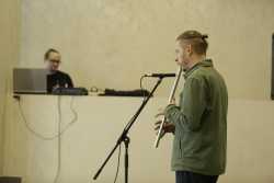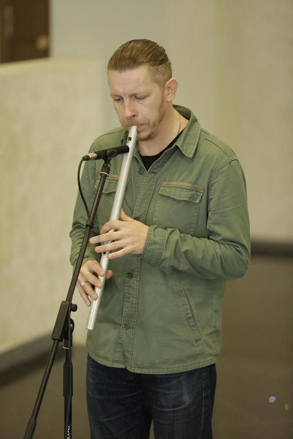 Перед концертом зрителей с программой «Добро пожаловать!» встречал музыкант ансамбля «Губернiя» Виктор Климов.