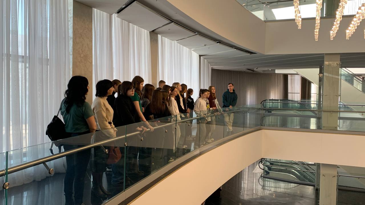 В рамках экскурсии ребята побывали в просторных фойе и концертных залах филармонии, узнали много интересных фактов об архитектурных особенностях здания, его внутренней отделке, технической оснащенности учреждения культуры, а также увидели репетицию симфонического оркестра на сцене Большого зала.