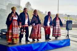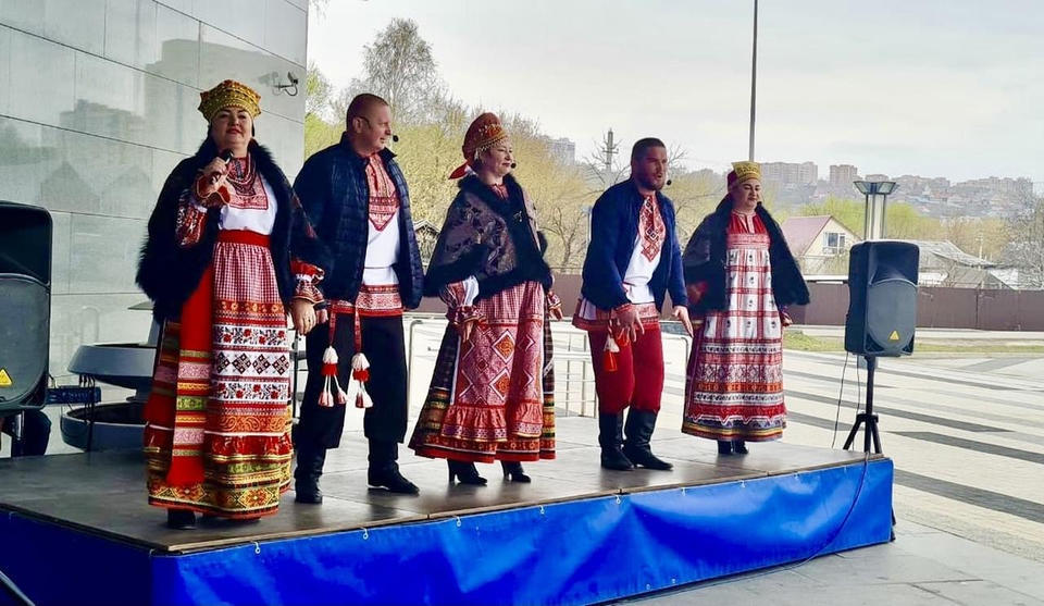 У центрального входа в Киноконцертный зал «Пенза» гостей с программой «Добро пожаловать!» встречали ансамбли «Вольница» и «Славяне».