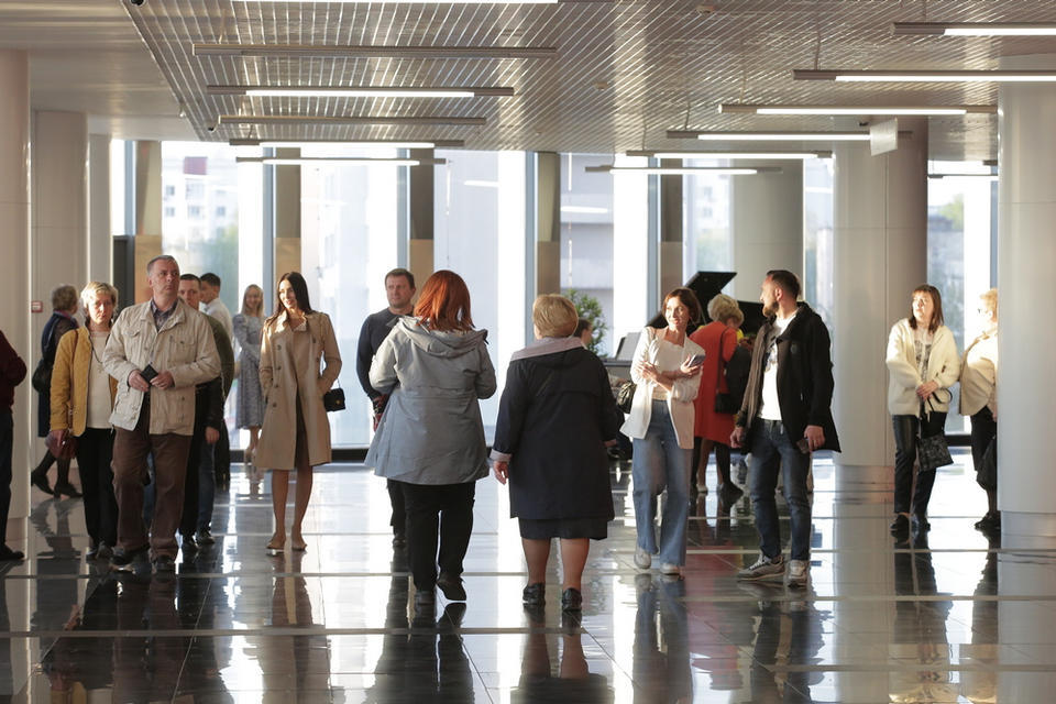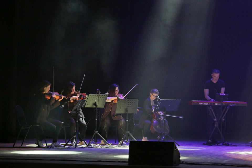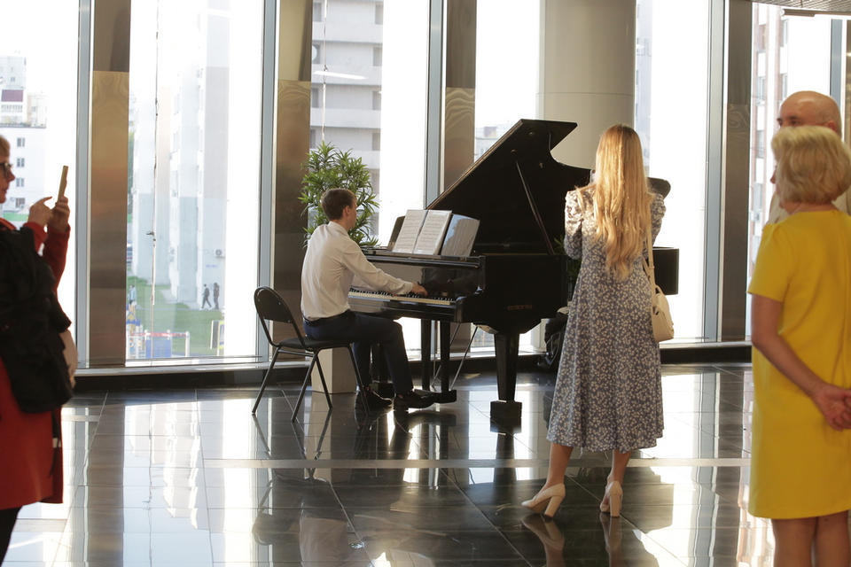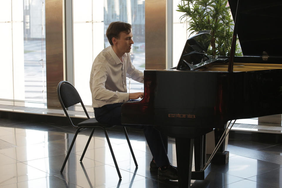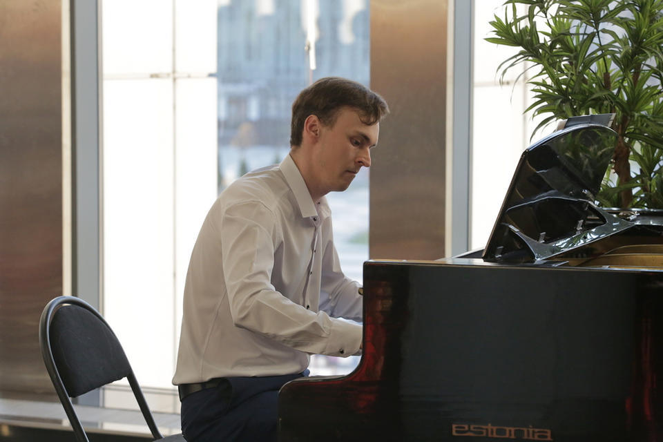 Перед началом концерта в фойе второго этажа зрителей встречал артист эстрадно-джазового ансамбля «Экспресс-бэнд» Геннадий Купринович с фортепианной концертной программой.