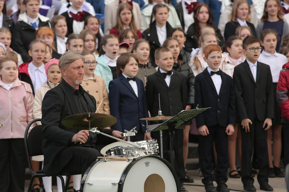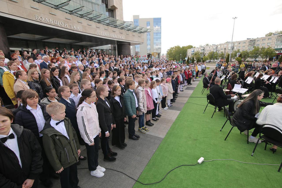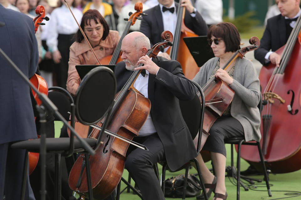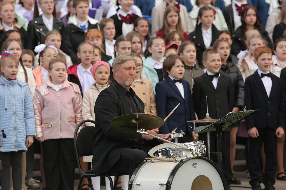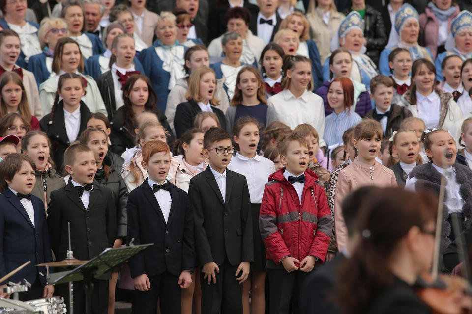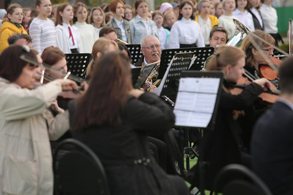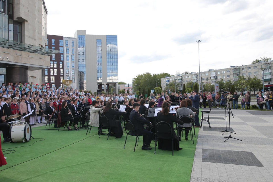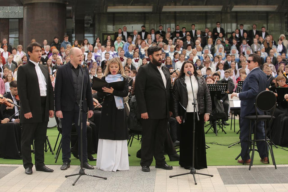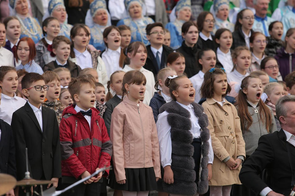 В состав многочисленного сводного хора вошли хоровые коллективы города: детские, студенческие, ветеранские, а также академический хор Губернаторской симфонической капеллы. Управлял сводным хором по традиции Заслуженный деятель искусств России Владимир Каширский.