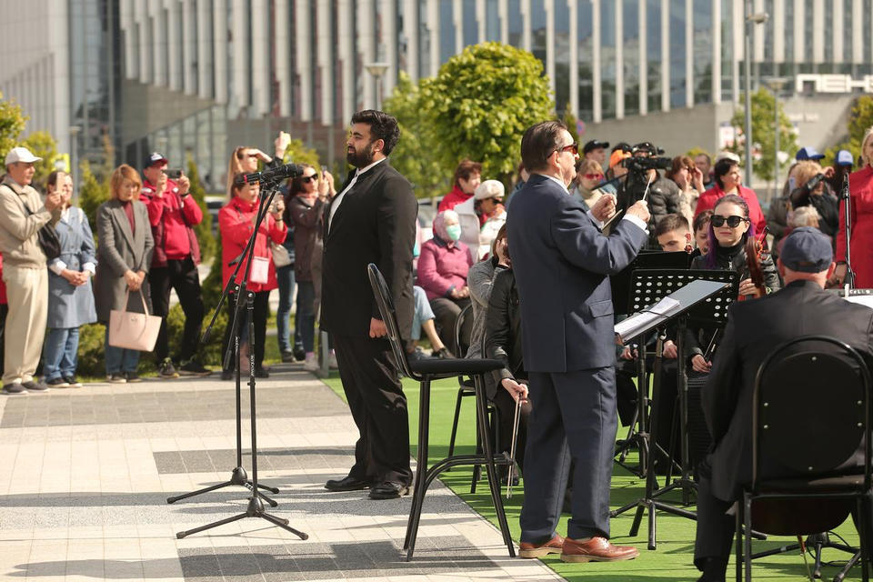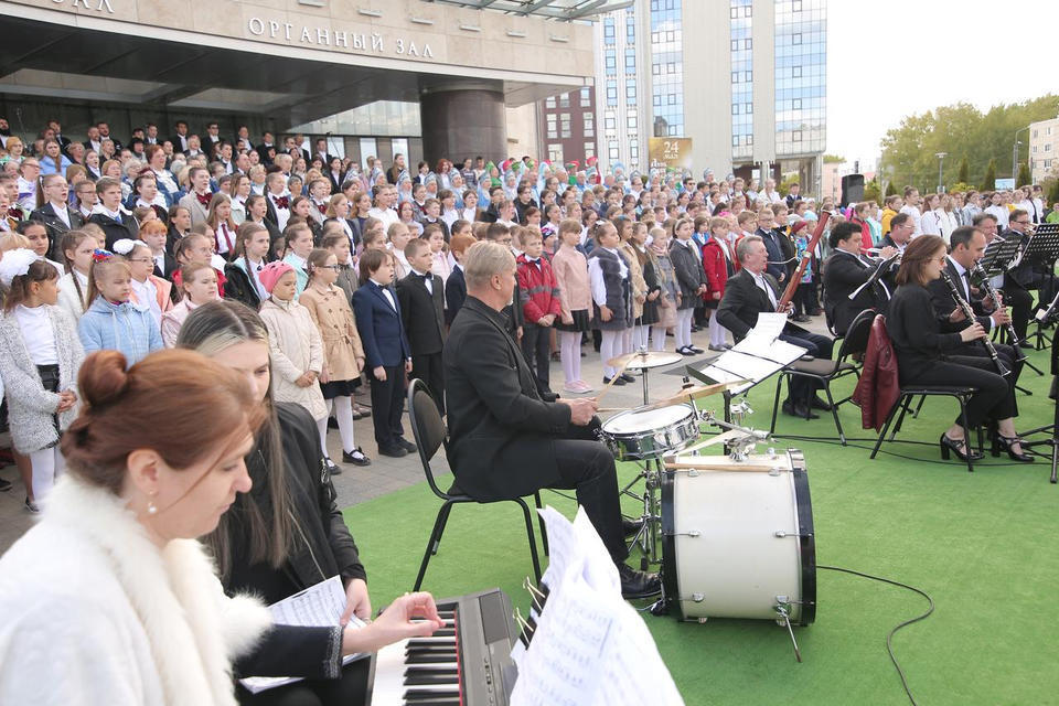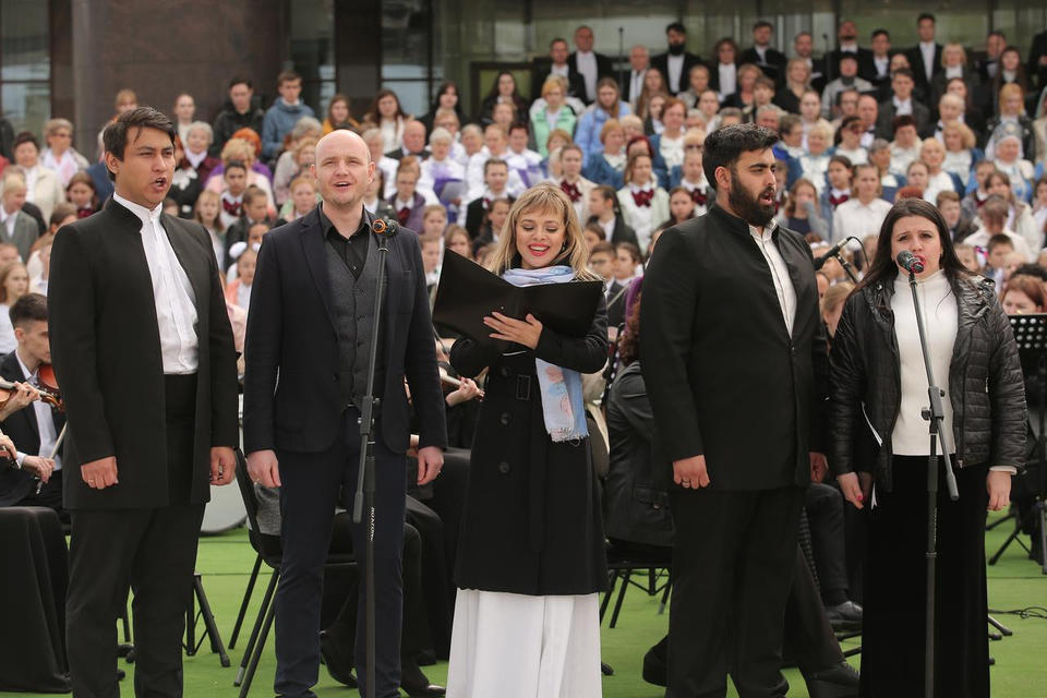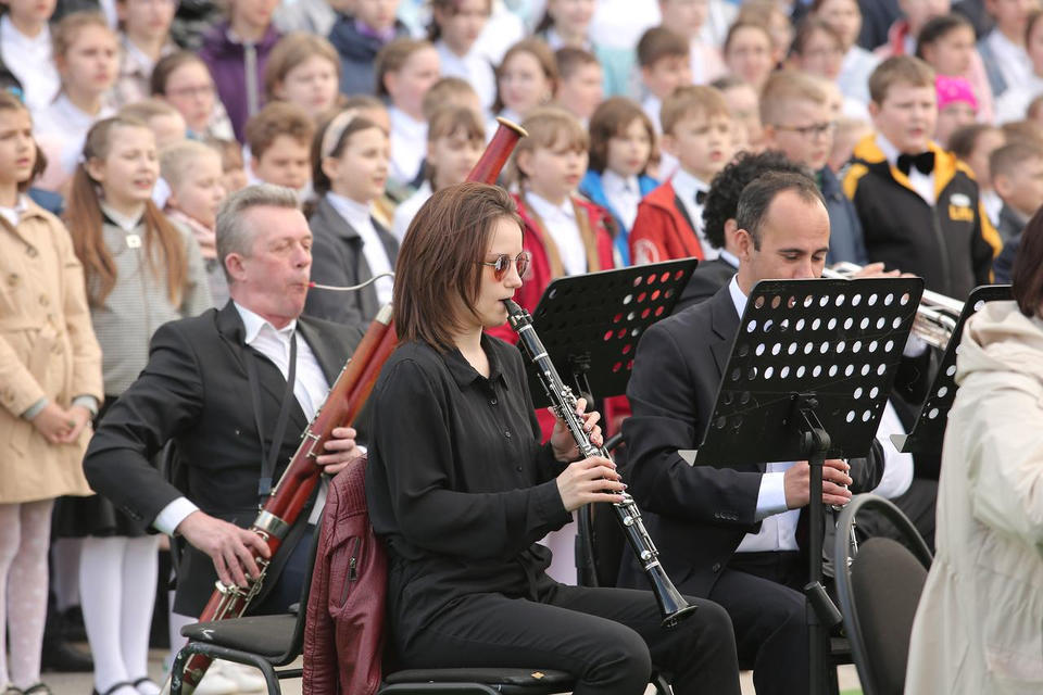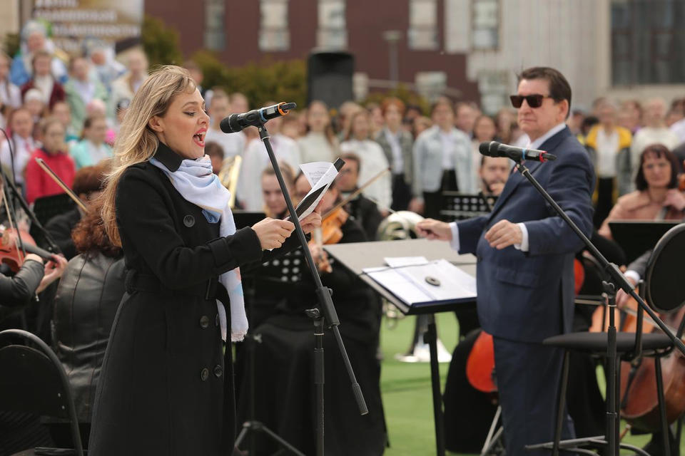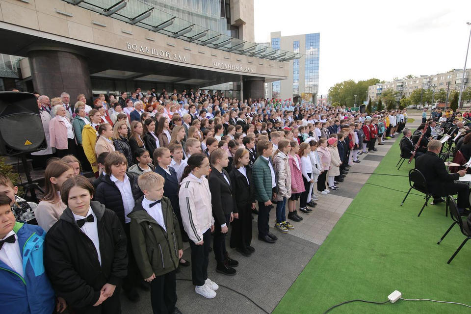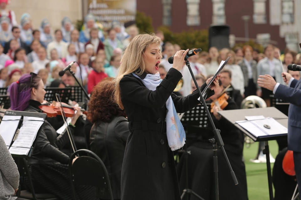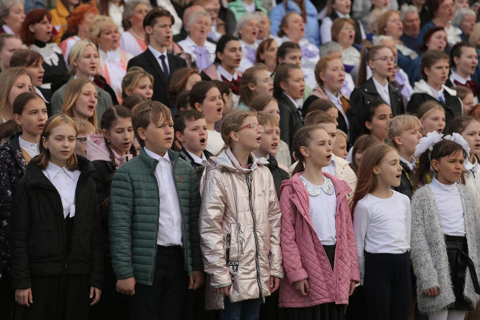 В состав многочисленного сводного хора вошли хоровые коллективы города: детские, студенческие, ветеранские, а также академический хор Губернаторской симфонической капеллы. Управлял сводным хором по традиции Заслуженный деятель искусств России Владимир Каширский.