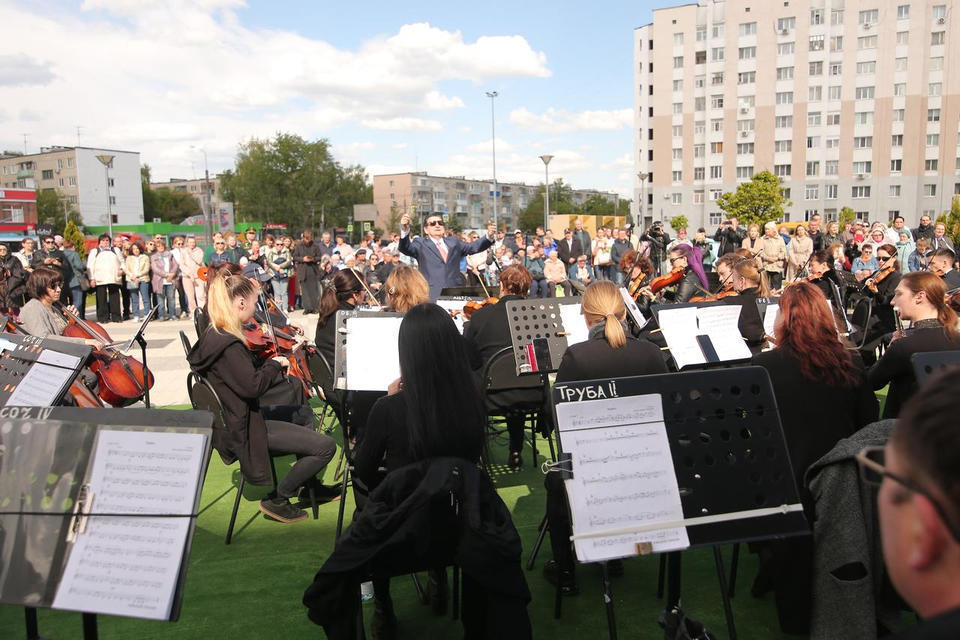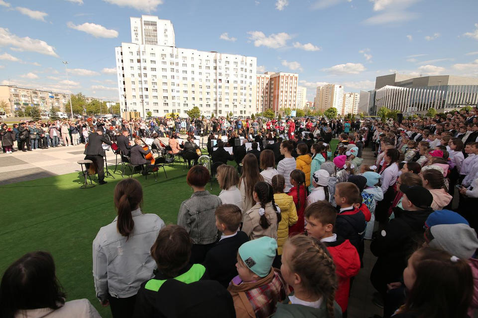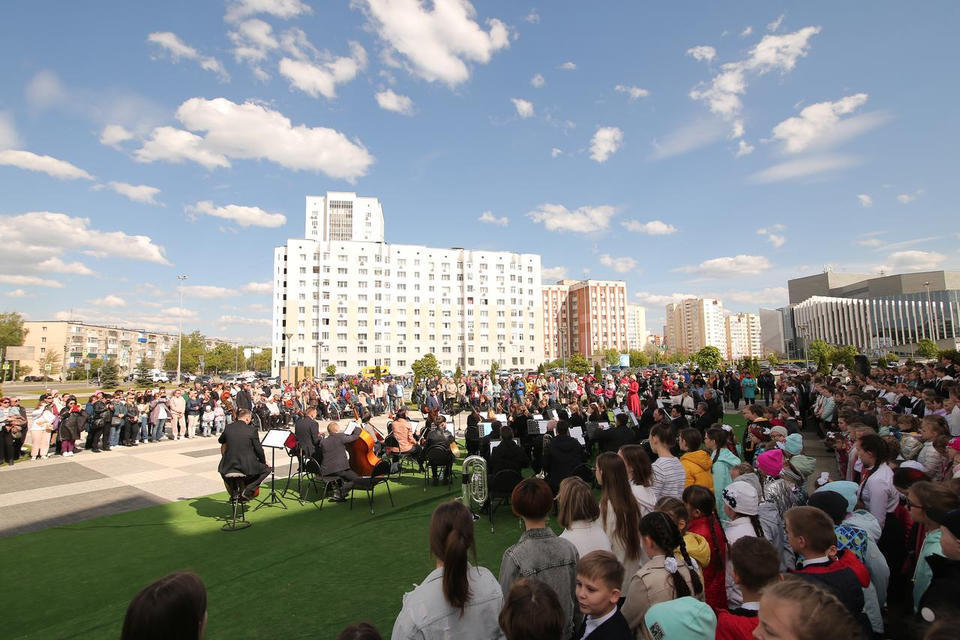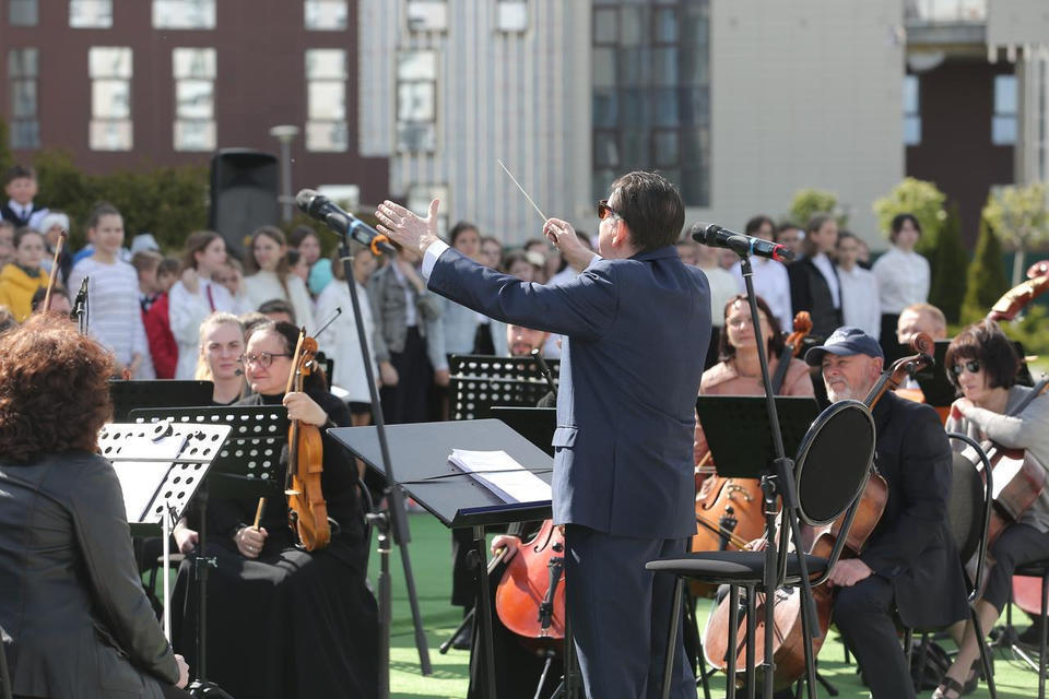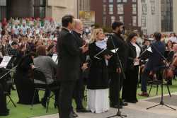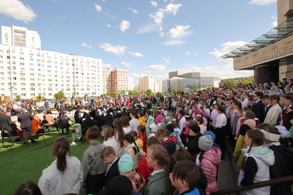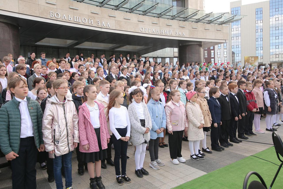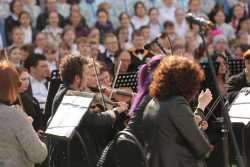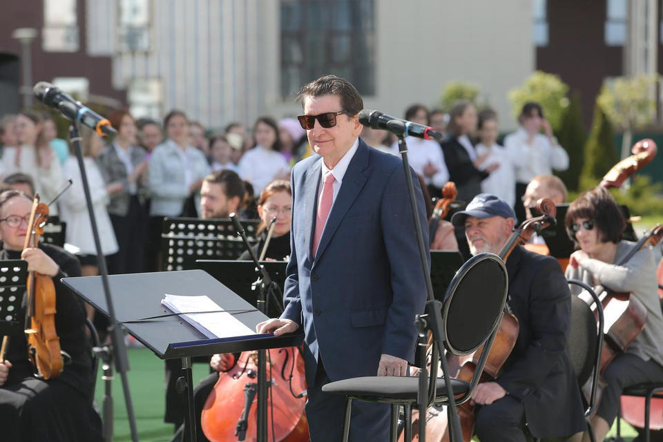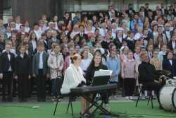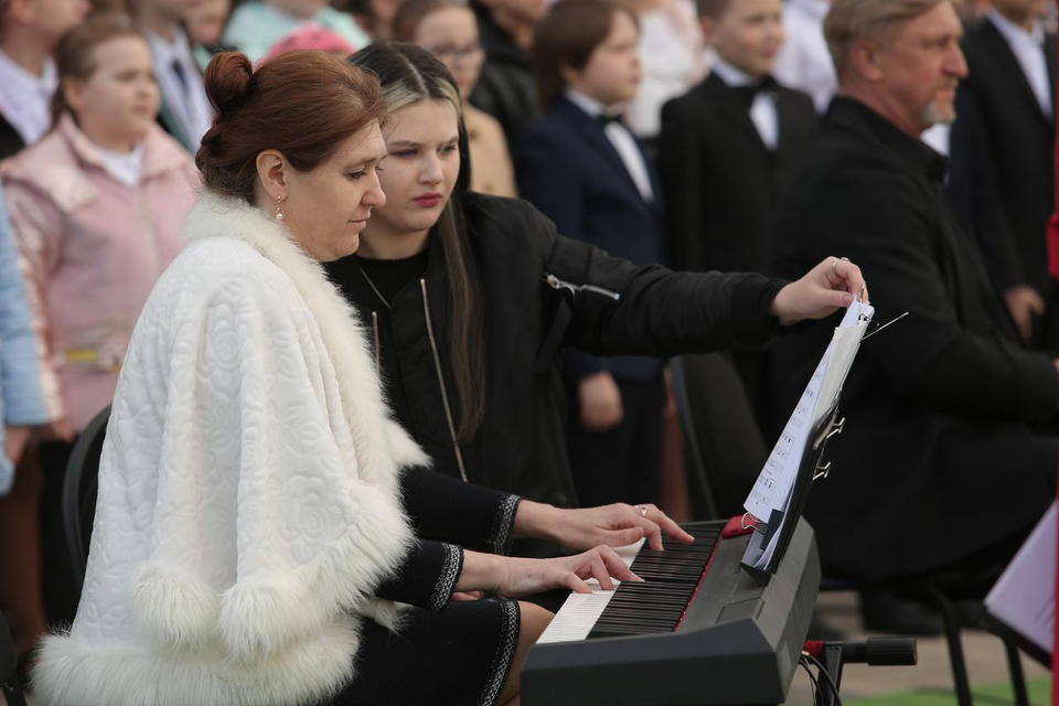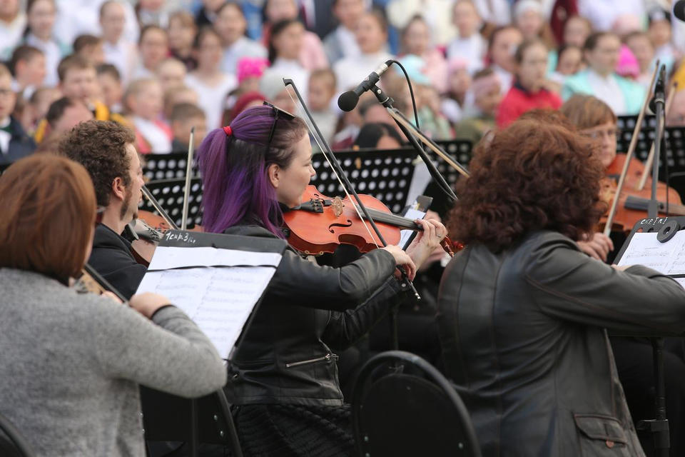В состав многочисленного сводного хора вошли хоровые коллективы города: детские, студенческие, ветеранские, а также академический хор Губернаторской симфонической капеллы. Управлял сводным хором по традиции Заслуженный деятель искусств России Владимир Каширский.