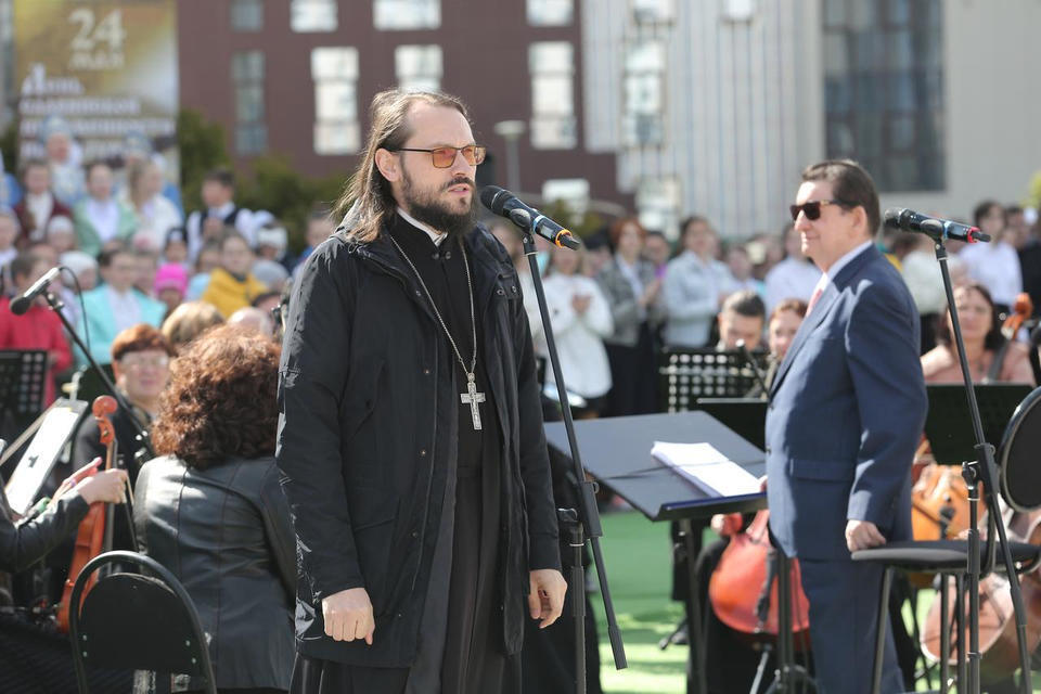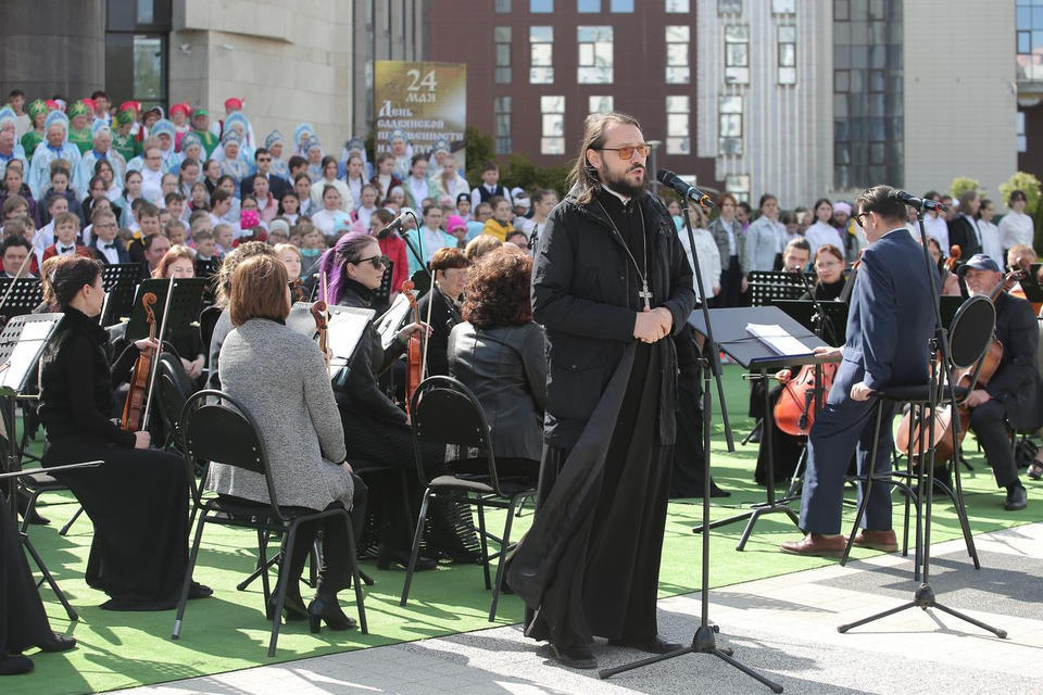 А открылся марафон традиционно – Гимном равноапостольным Кириллу и Мефодию (муз. Петра Чайковского) в исполнении академического хора Губернаторской симфонической капеллы.