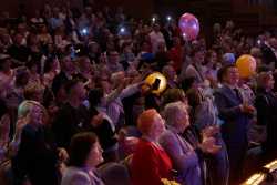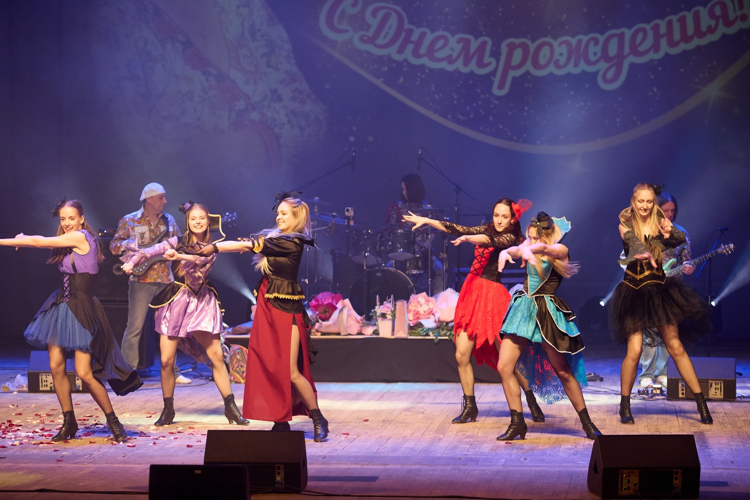 Весь вечер в зале царила атмосфера настоящего дня рождения: цветы, подарки, гости, поздравления, шары и прекрасное настроение!