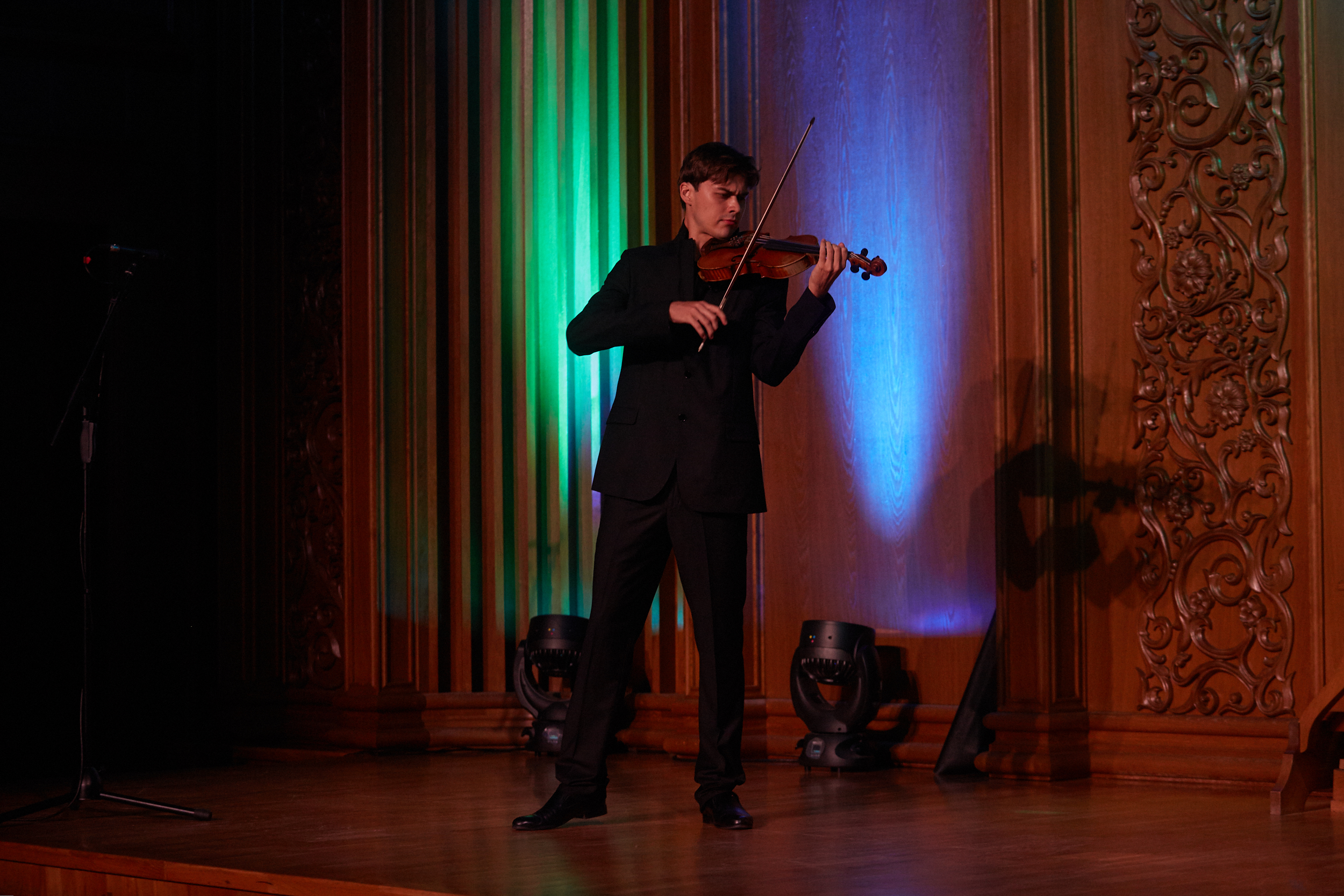 Большим и невероятно приятным сюрпризом для публики стали совместные номера Тимура Халиуллина с талантливыми друзьями и коллегами. Вместе с лауреатом международных конкурсов, студентом Санкт-Петербургской консерватории им. Н.А. Римского-Корсакова Никитой Давыдовым (скрипка) они виртуозно исполнили знаменитую Чакону соль минор Т. Витали.