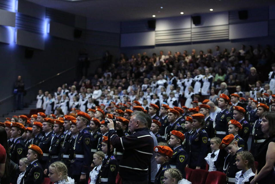Перед тем, как будущие защитники Родины дали важное обещание, их старшие товарищи продемонстрировали то, чему научились в кадетской школе: строевая подготовка, рукопашный бой и даже бальные танцы, ведь в этой школе обучение проходит по программе классической гимназии.