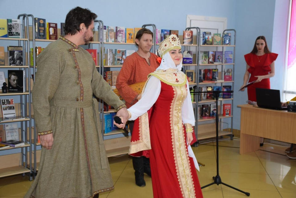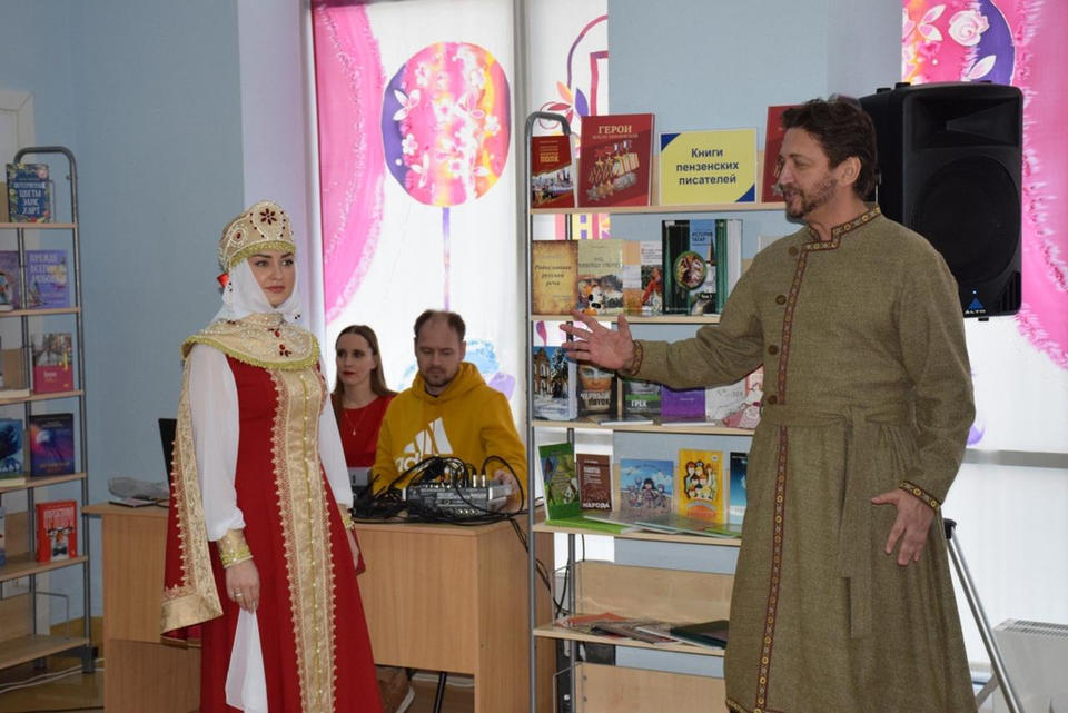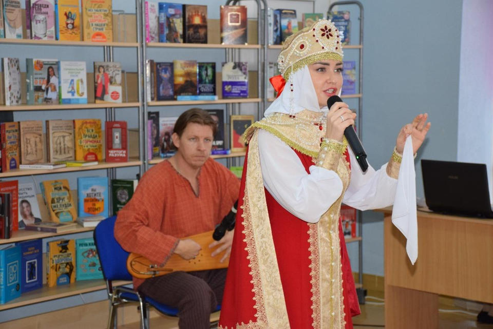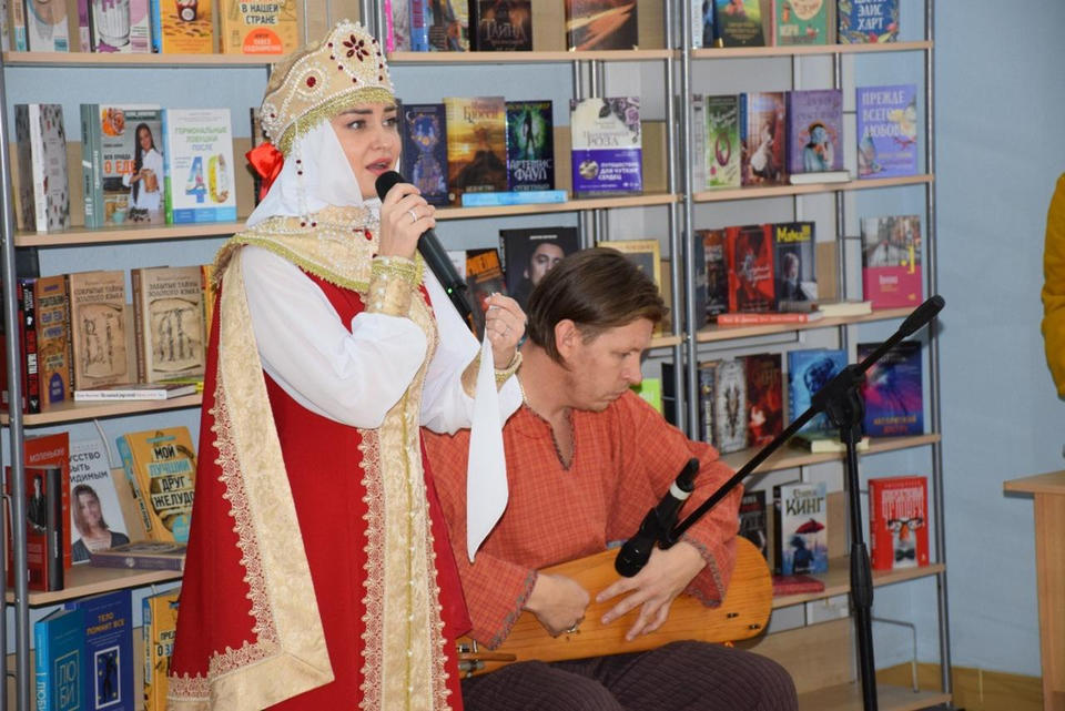 Солистка «Пензаконцерта», исполнительница народной песни, Заслуженная артистка Пензенской области Марта Серебрякова и музыкант ансамбля русских народных инструментов «Губернiя» Виктор Климов выступили 24 ноября на открытии Межрегиональной книжной выставки-ярмарки «Мир книг на Пензенской земле».