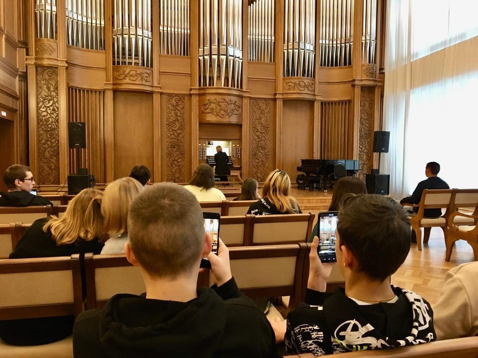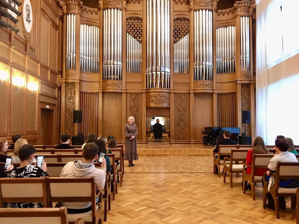 В Органном зале школьники познакомились с историей и особенностями пензенского органа, а солистка «Пензаконцерта» Софья Семьянова исполнила органные сочинения Баха, Мендельсона и Чайковского.
