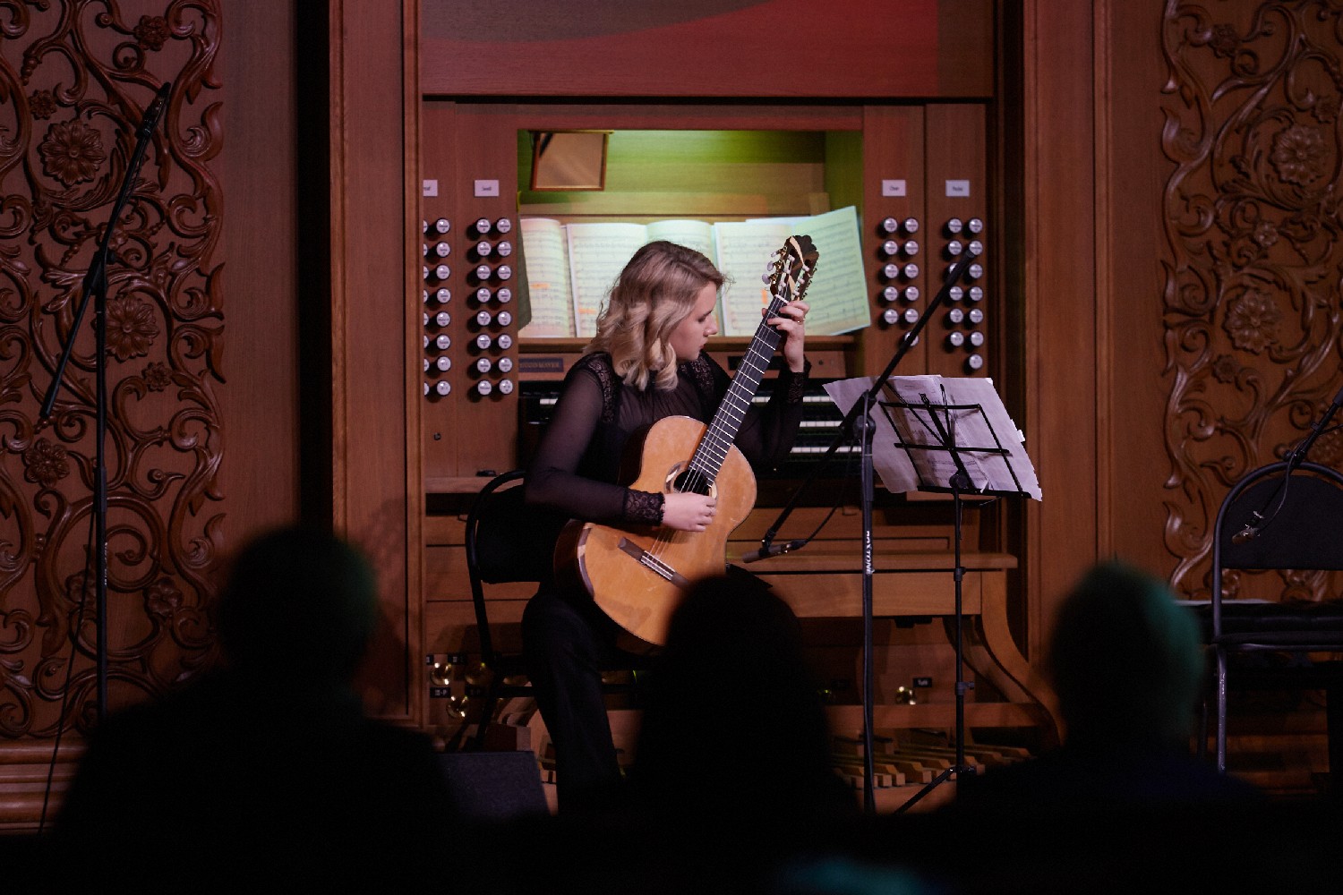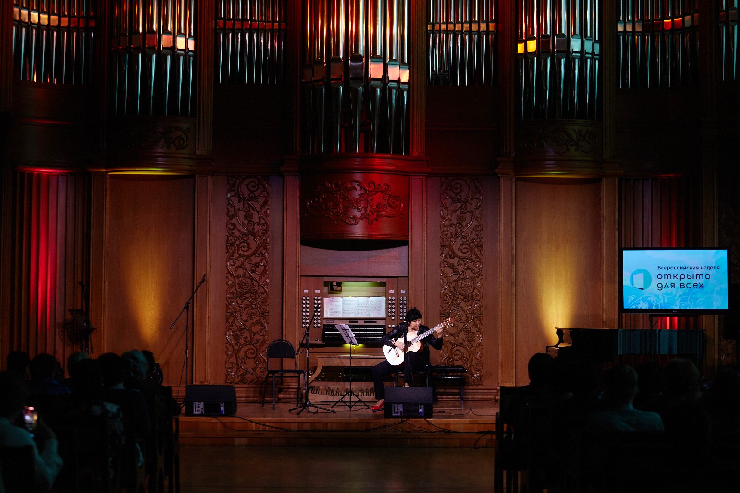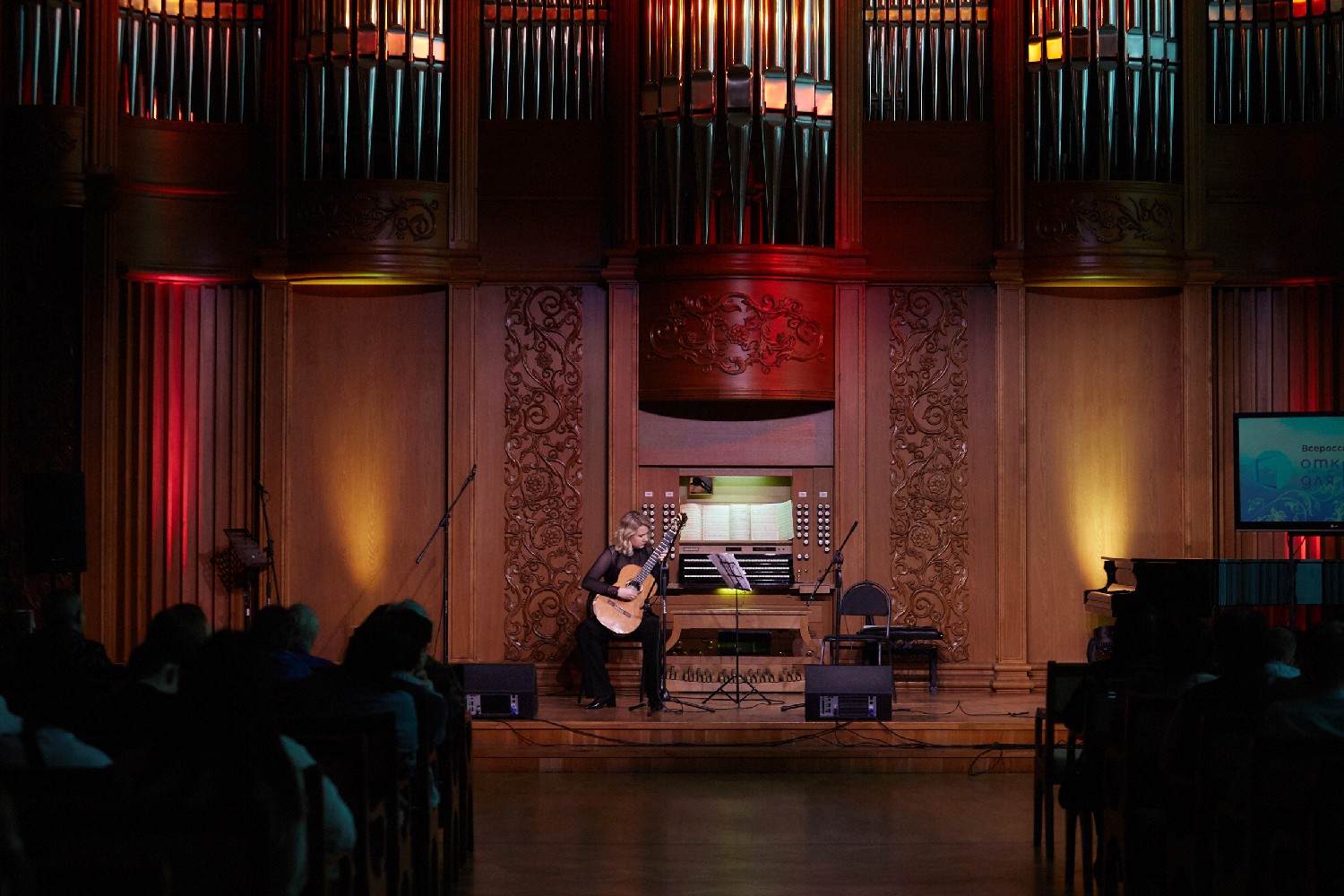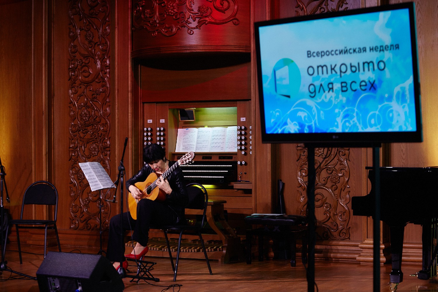 Известные классические произведения для собравшихся исполнили: органистка Софья Семьянова, руководитель ТК «Экспромт» заслуженная артистка России Людмила Лузгина (гитара), Ирина Федотова (скрипка) и Алиса Рудаева (гитара).