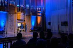 В первом отделении концертной программы музыкант исполнил известные произведения Иоганна Себастьяна Баха, во втором – познакомил публику с творчеством ещё одного немецкого композитора Йозефа Райнбергера, а также исполнил собственные импровизации.