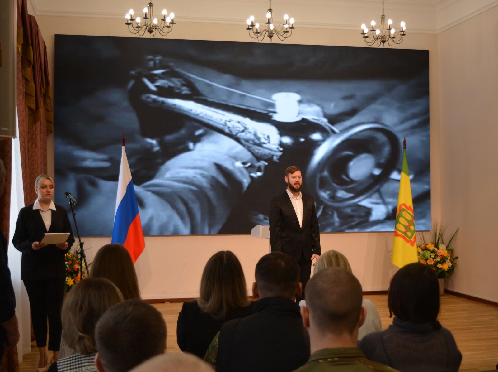 Артист группы "Калейдоскоп" Тимофей Кузьмин выступил 24 февраля на открытии выставки «Своих не бросаем. Пензенцы – участники специальной военной операции» новом корпусе Пензенского государственного краеведческого музея.